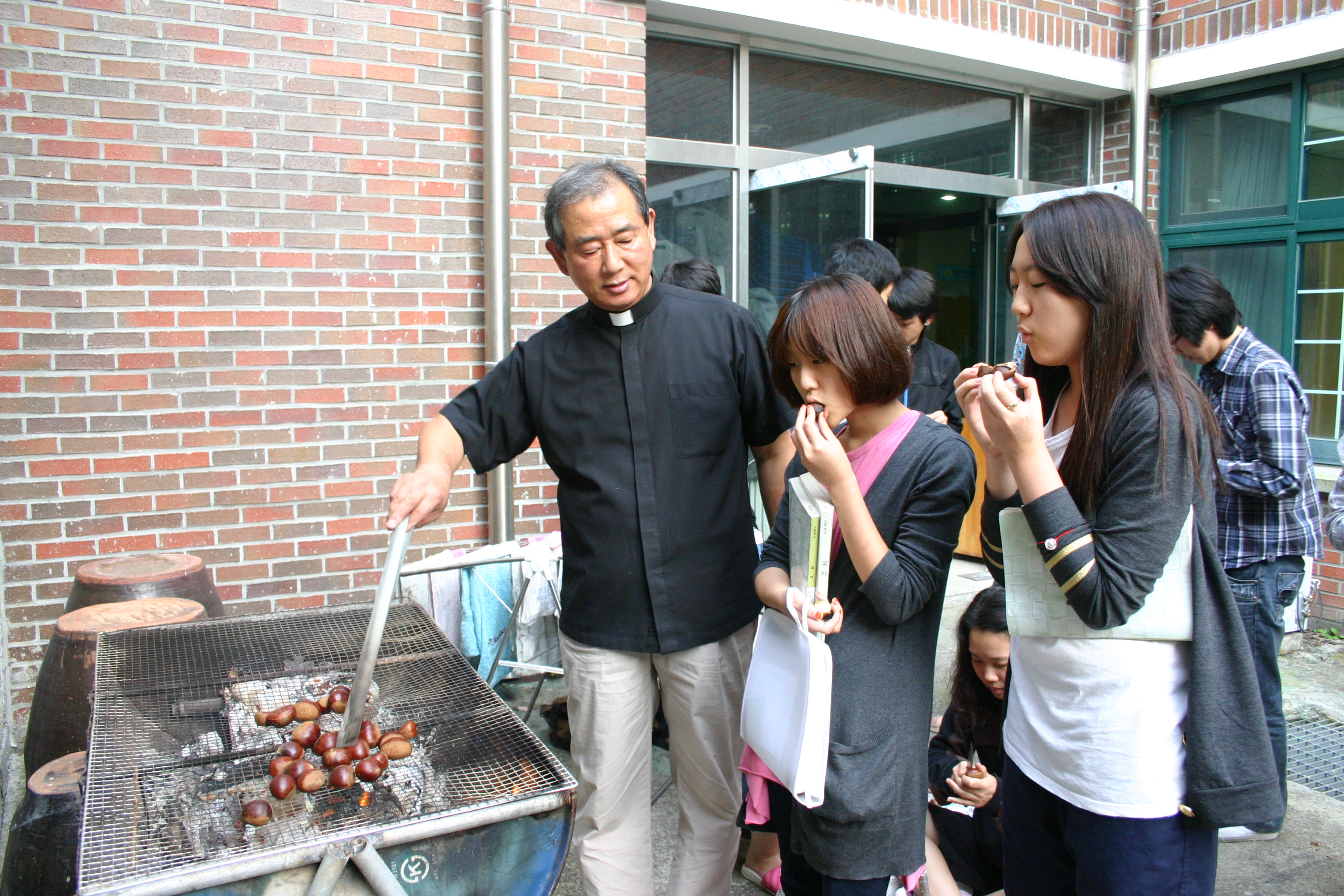 어제는 신부님께서 장작에 불을 피워서 학생들에게 구워주셨는데 우리 학생들은 뜨거운 군밤을 이리저리 굴려가며 짧은 손톱으로 껍질을 까서 얼른 먹었는데 맛있다고 아우성이었답니다.