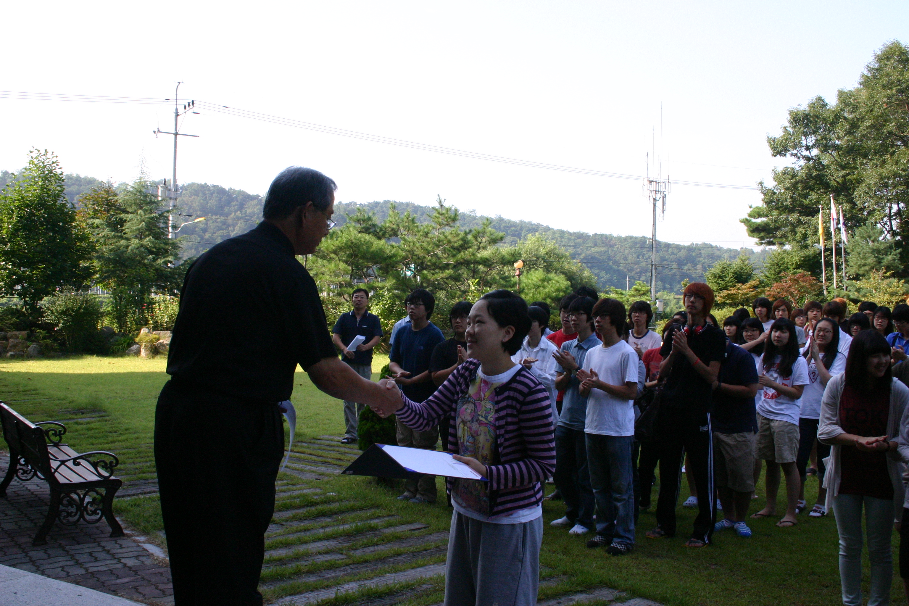 학생 회장인 김민용 학생이 충청북도 교육감 상을 받았습니다.