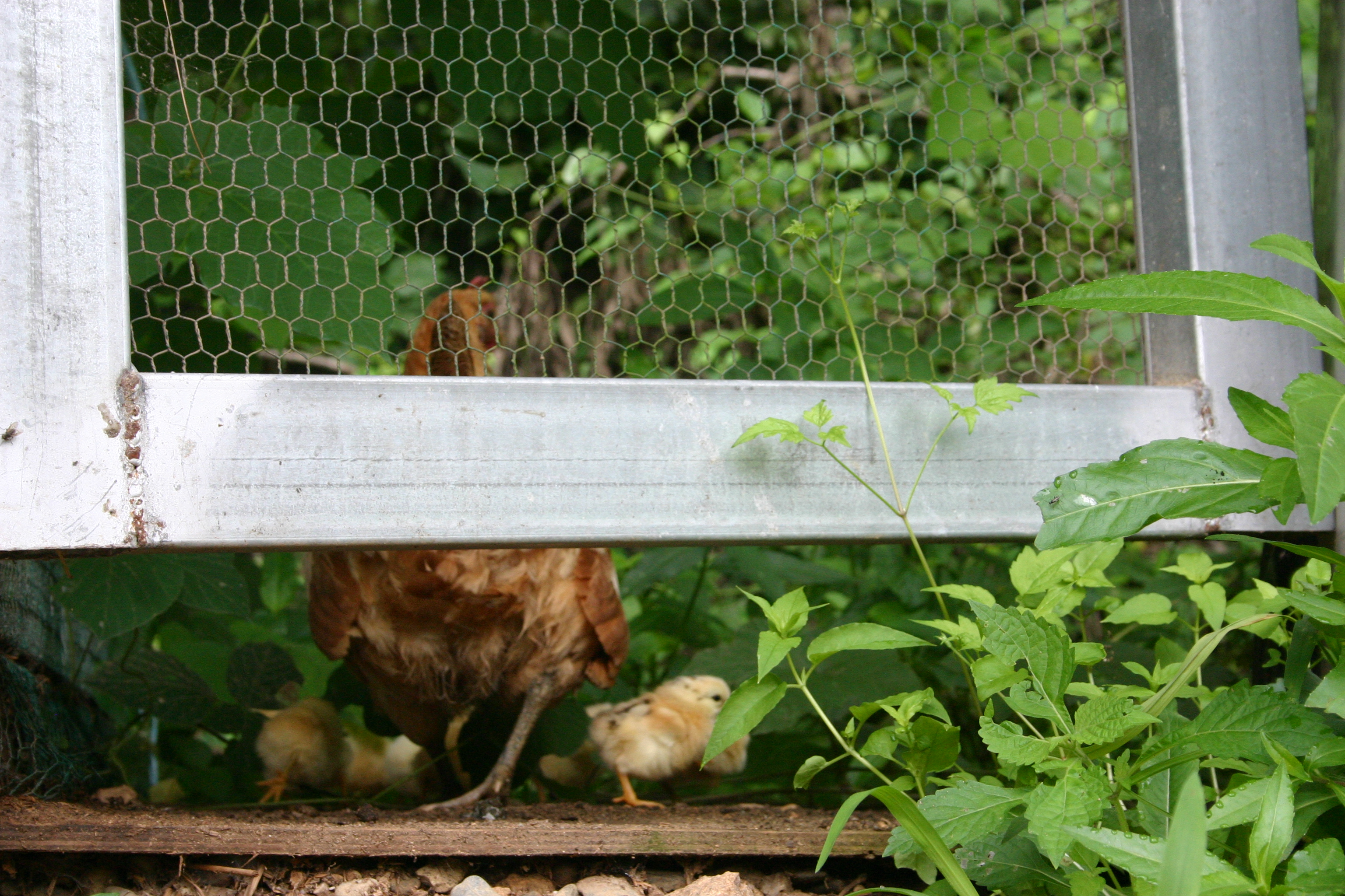 병아리중에도 튀는 병아리가 암닭 꽁지 밑으로 고개를 쏘옥 내밀어 주었습니다. 에구~ 고맙다!!