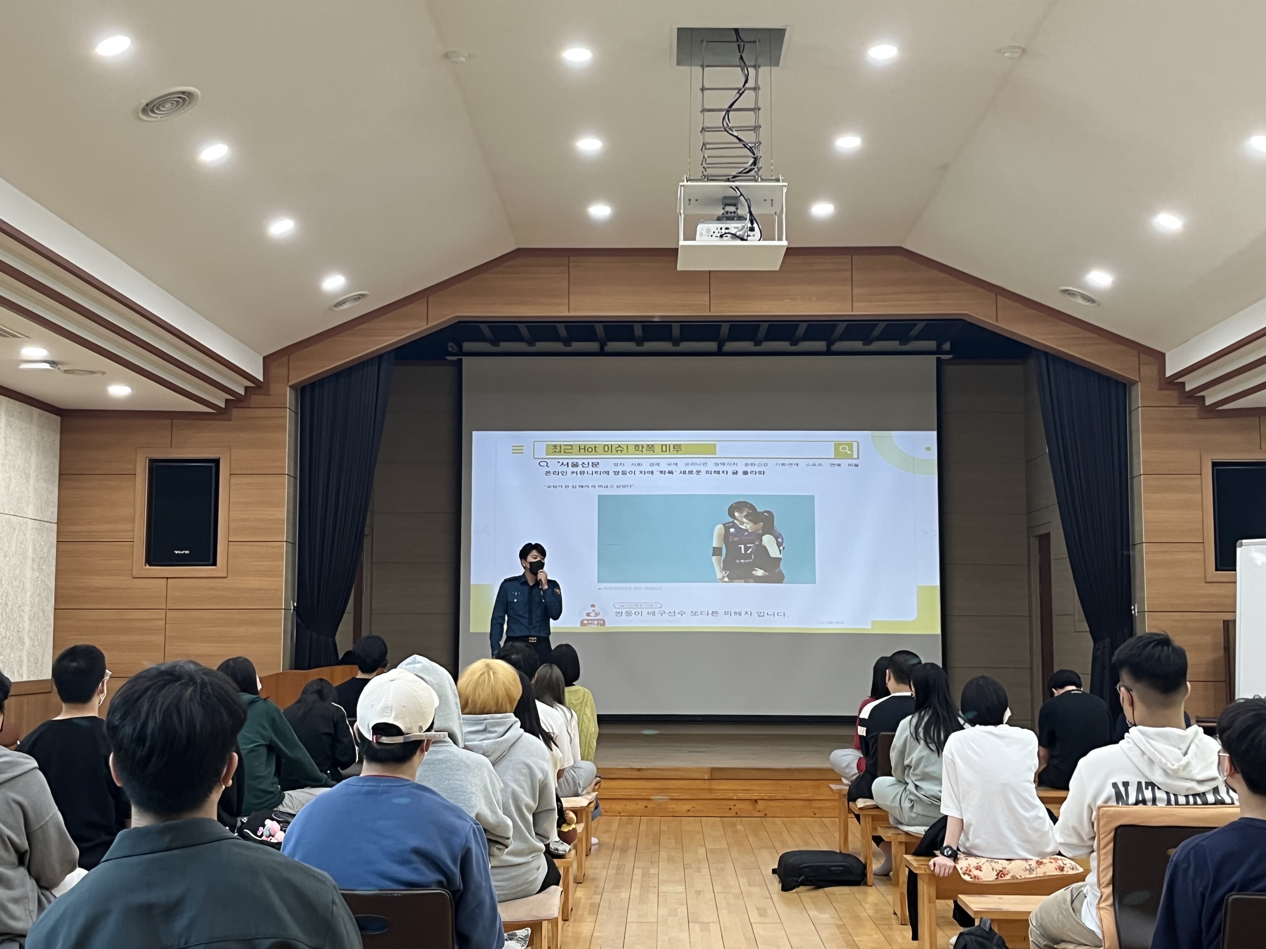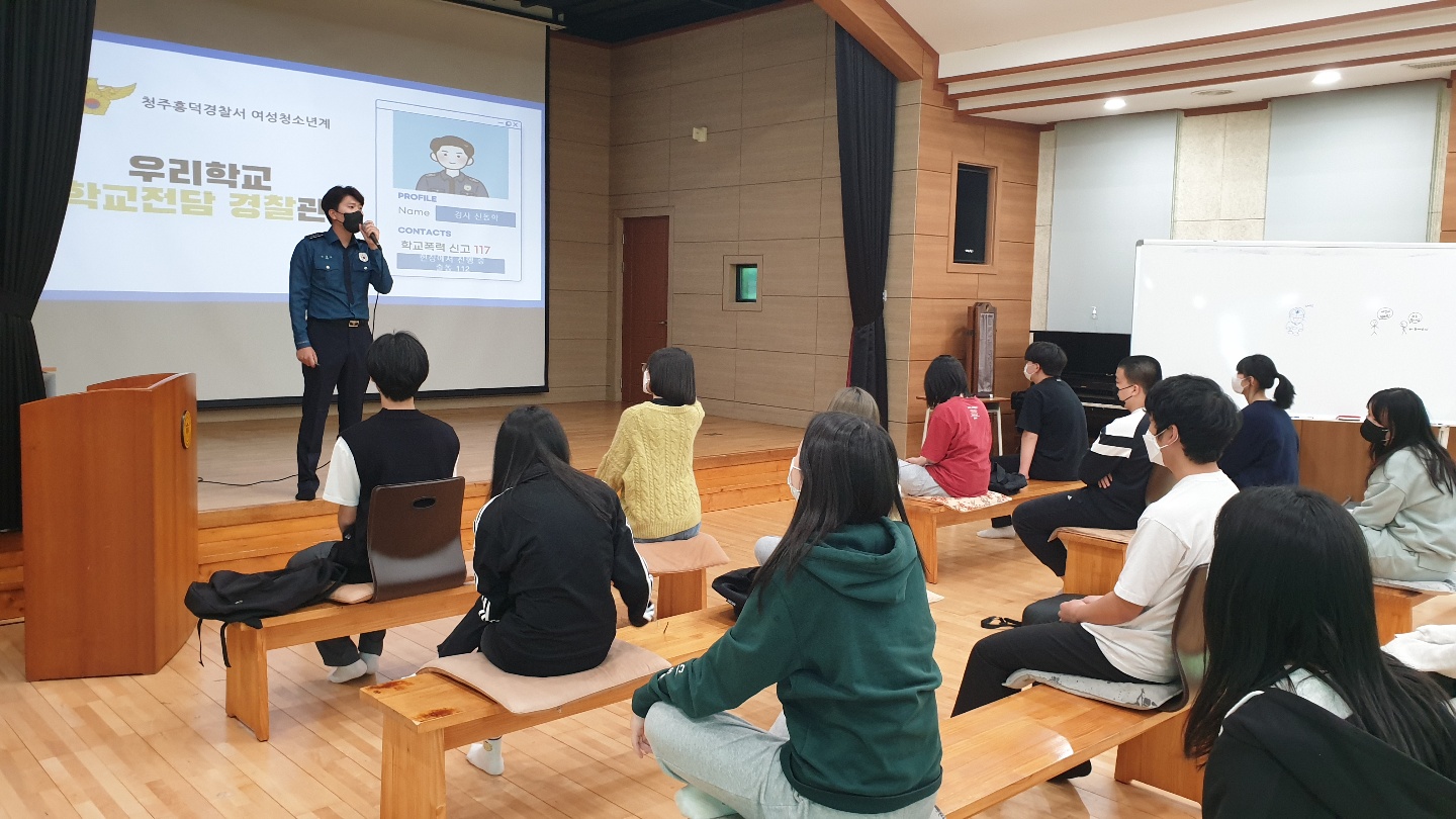 2022.05.04.(수) 양업고등학교 1학년 학생들을 대상으로 흥덕경찰서에서 학교폭력 및 성폭력 예방교육을 실시하였습니다.