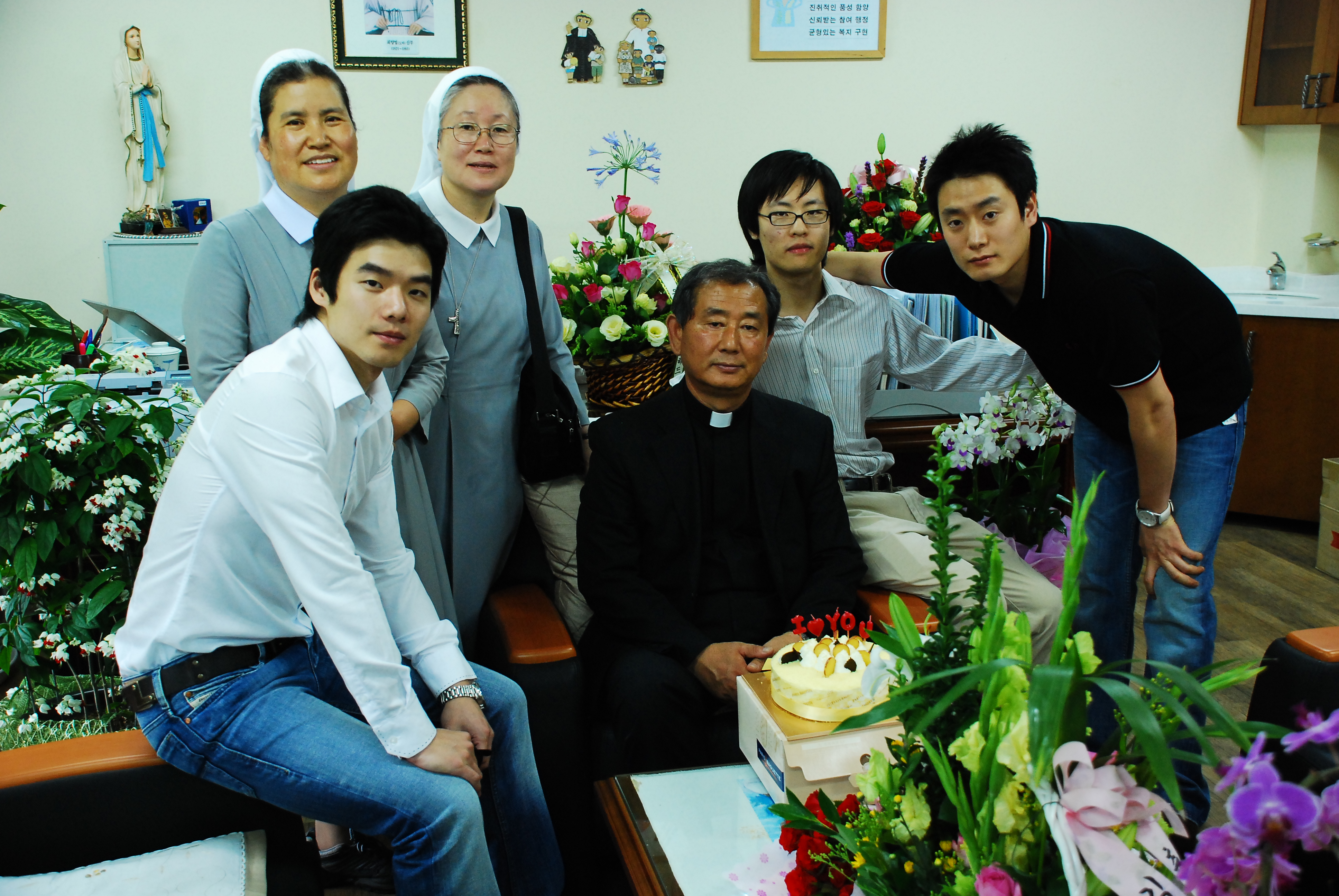 축하케익을 준비하여 신부님의 은경축을 축하하고 돌아갔다.