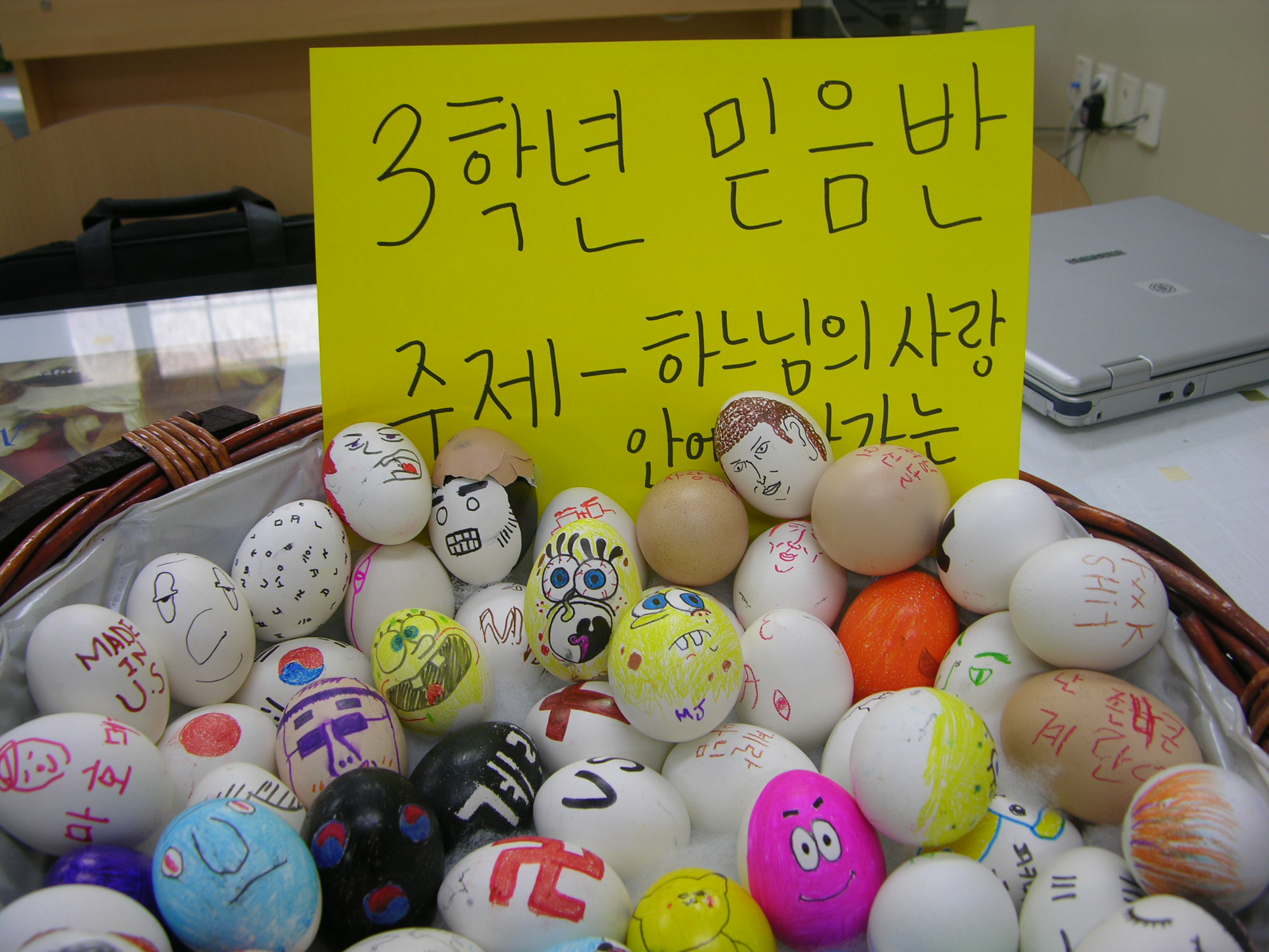 지난 성목요일 오후에 반별로 부활계란 그리기를 하였답니다.