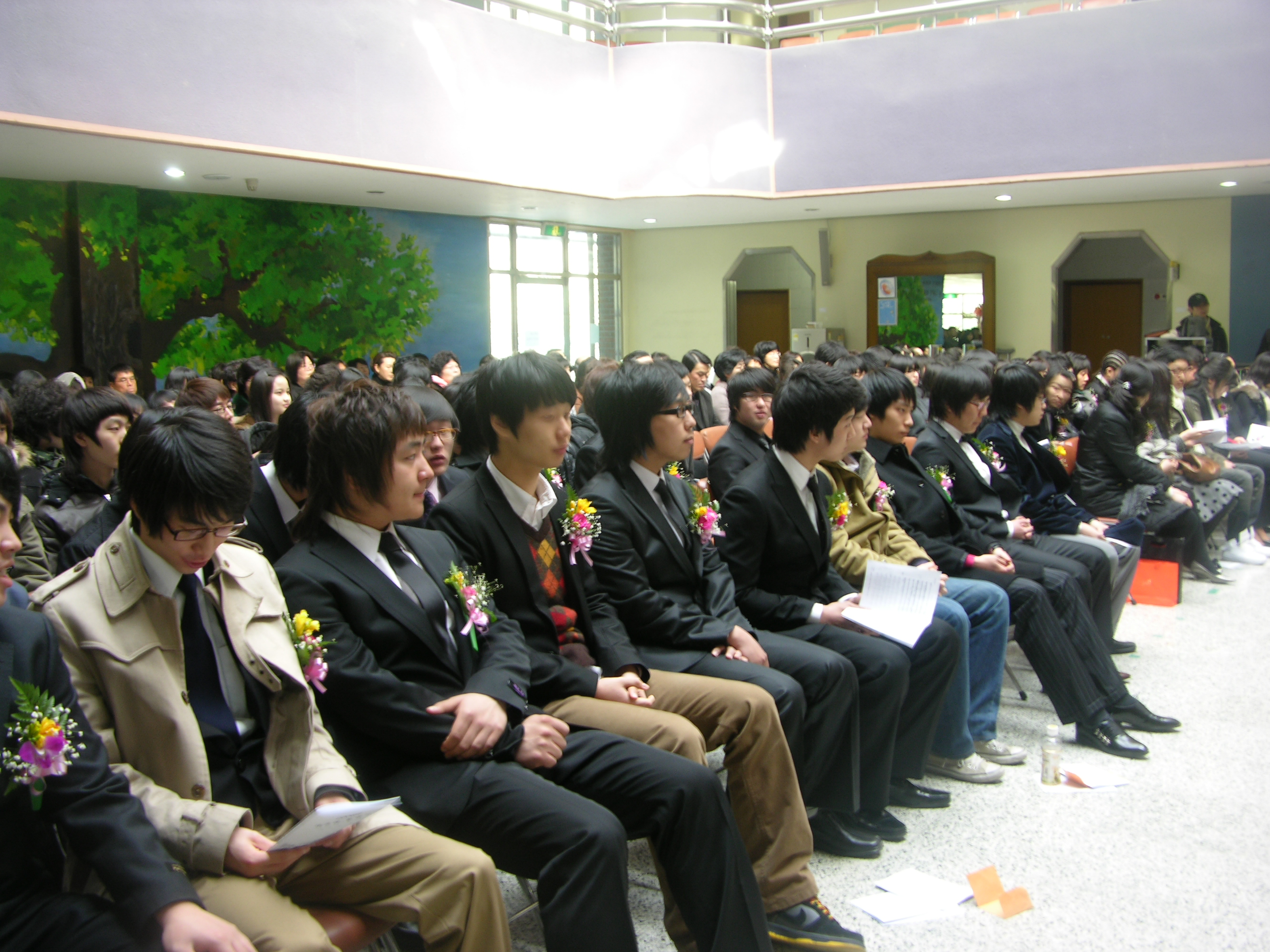 검은 양복을 차려 입고 입장한 학생들의 모습은 평소 보던것과는 달리 매우 성숙하게 보였지요.