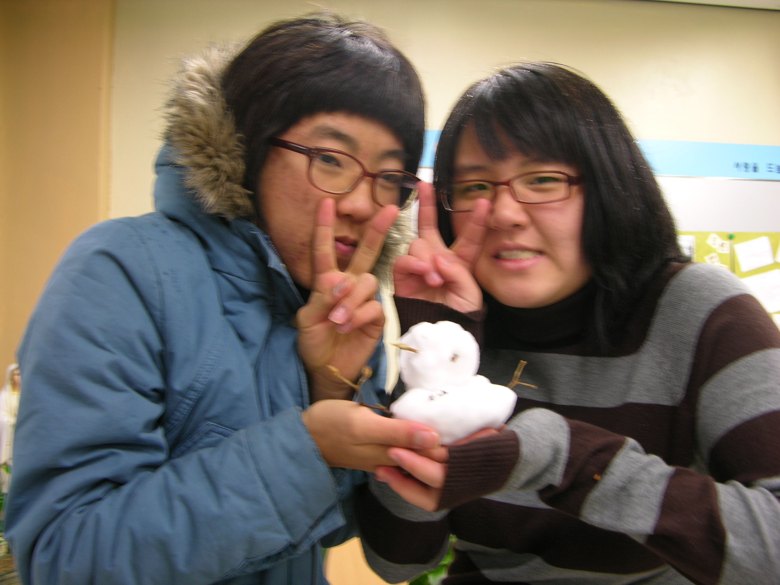 첫눈 오는날 전화할 아무게도 없는 저에게 학생들이 눈사람을 맹글어서 가지고 왔어요. ㅋㅋ
