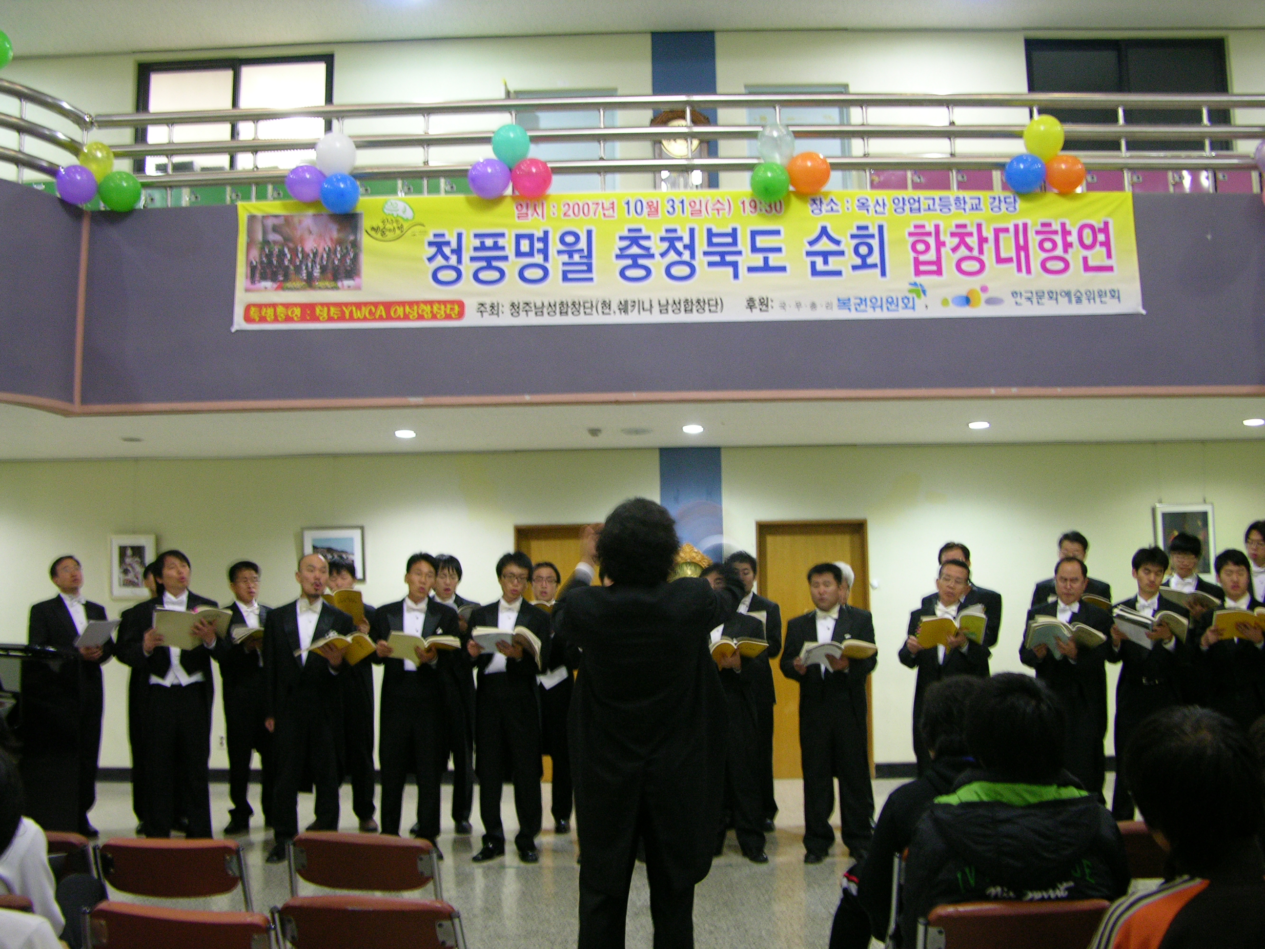 어제 10월의 마지막 밤에 청주 남성 합창단 30여분이 양업고를 방문하여 합창 공연을 하셨답니다.