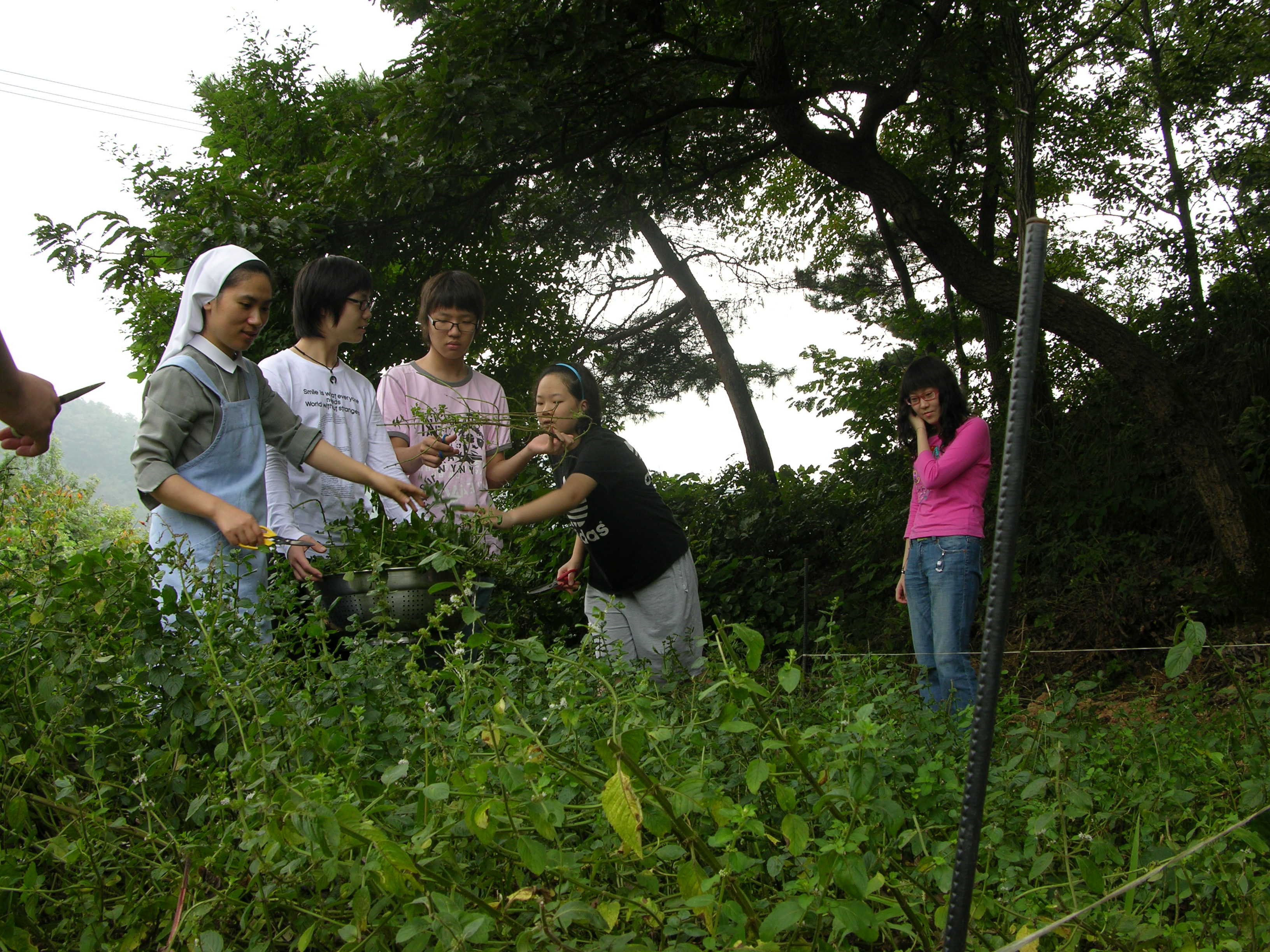 지난 학기에 청소년 성장 프로그램의 일환으로 진행이된 "그린팜"에서는 심어 놓았던 허브(페파민트)잎을 추수하였답니다. 수돗가에서 깨끗하게 세척한 다음 도서관 뒷편에 노끈을 이어 다발을 만들어 말려 놓았지요.