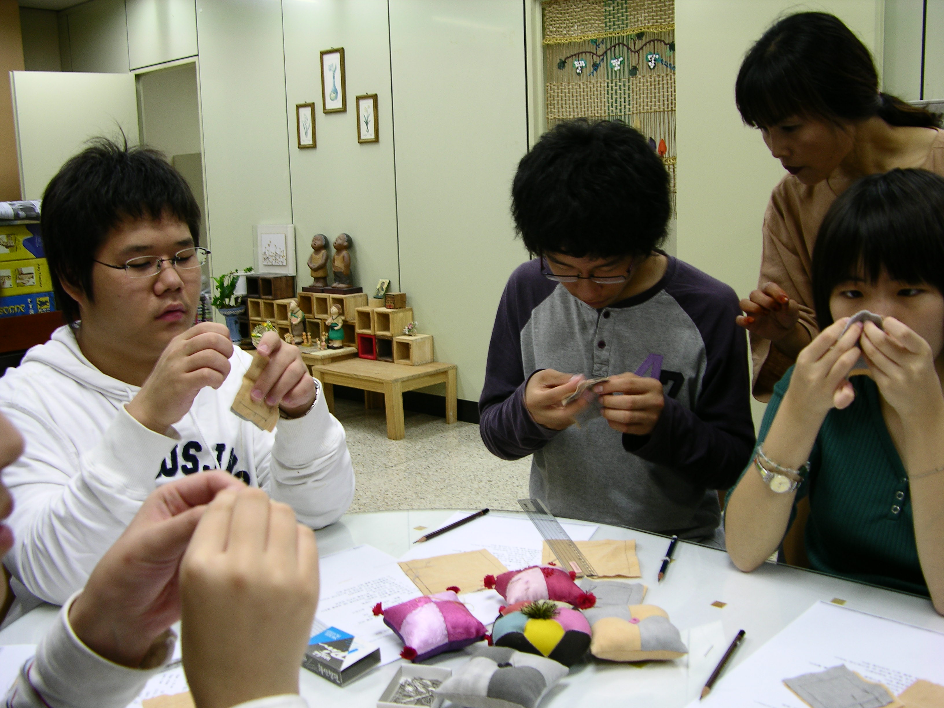 "침선 공예반"에서는사각 바늘 방석을 만들었지요. 남학생들도 여학생 못지 않게 시침질이 고왔답니다. 양업축제때에 소품 전시회를 가질 예정이랍니다.