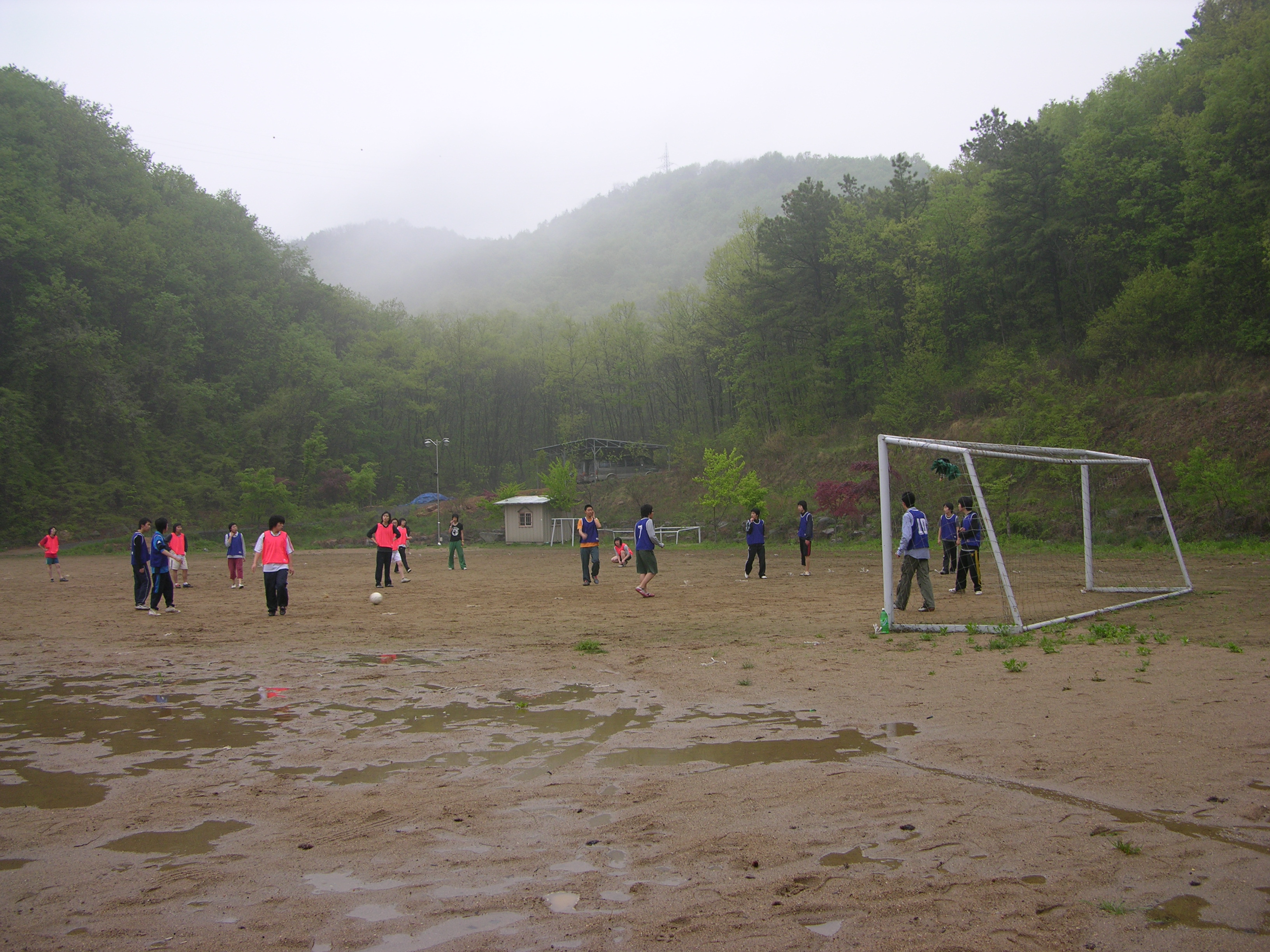 <P>비가오는 가운데 1학년들은 3학년들을 대항하여 압박축구를 구사하며 열심히 뛰어 보았으나...아깝게도 ...</P>