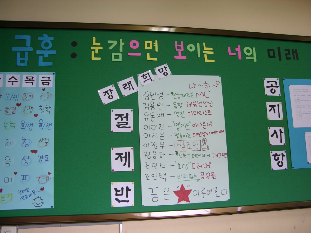 <P>오랜만에 교실 구석 구석은 말끔하게 청소가 되었어요. 자주 이런 일이 있으면 좋겠어요. ㅎ</P>