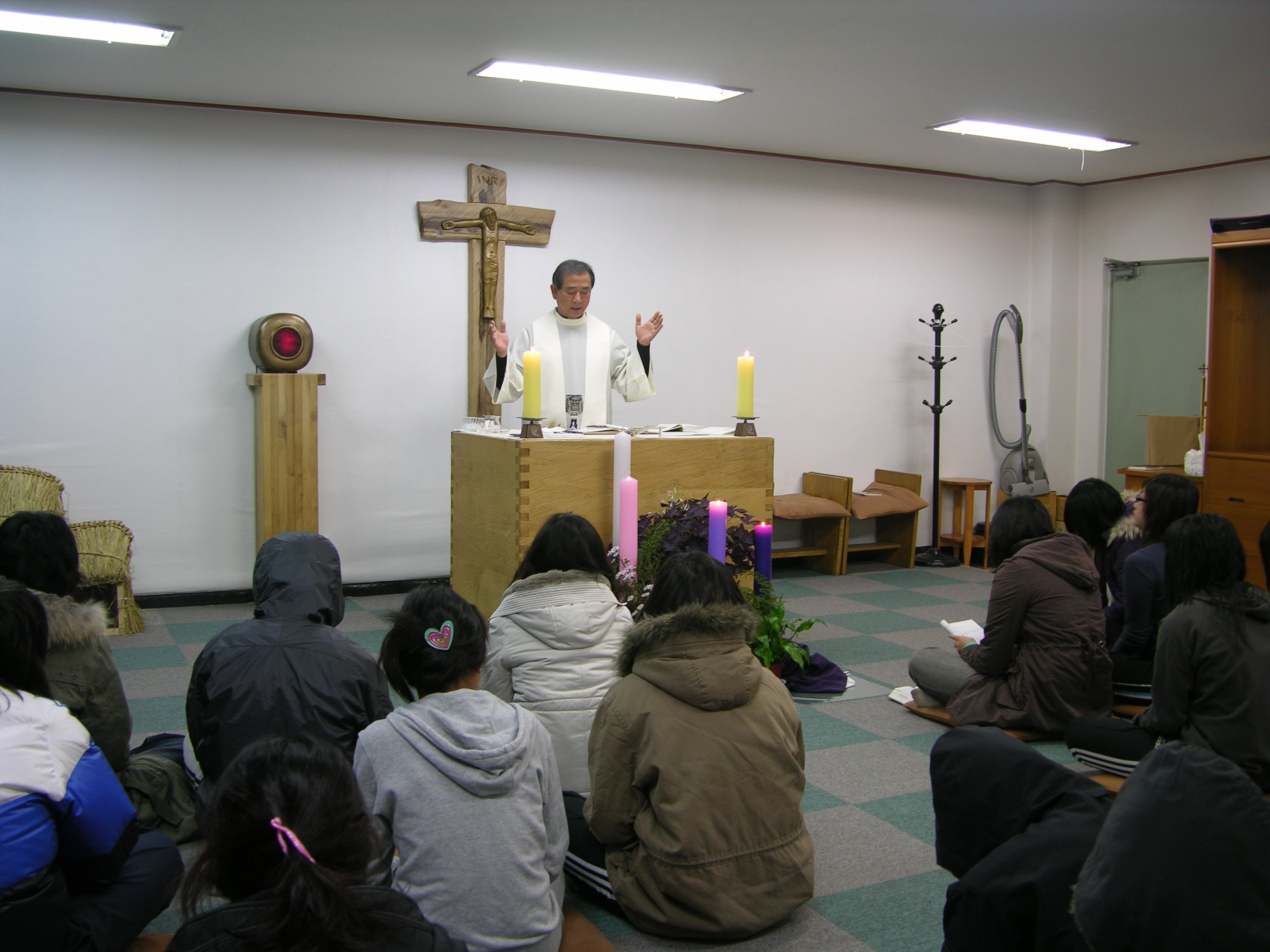 <P>몇명의 학생은 아직도 잠에서 덜 깨어나 Semi Coma(약간 혼수) 상태였으나 학생들의 마음안에 작은 사랑의 마음을 가득안고 성당문을 열고 들어섰지요.</P>