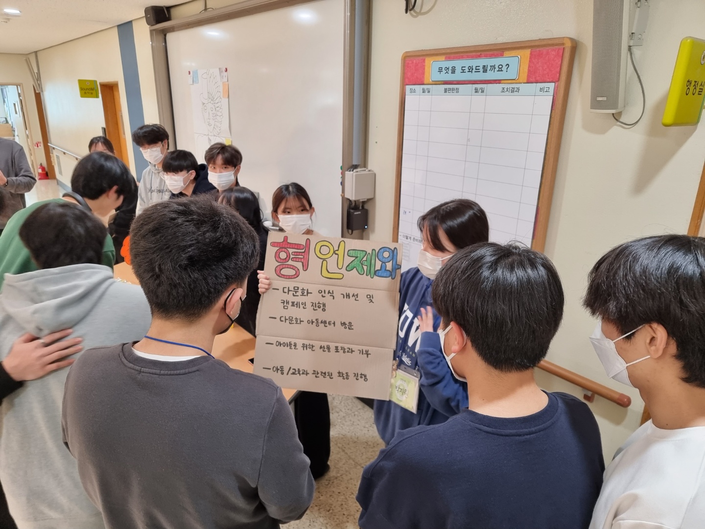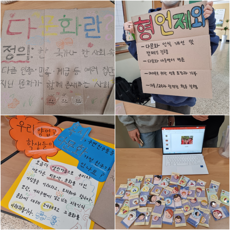 '형 언제와' 다문화 동아리 회원들은 2022.04.06.(수) 점심시간에 '세계 가족 공동체 문화 이해'라는 주제로 캠페인을 실시하였습니다.