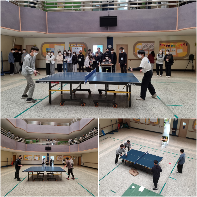 2022.04.06.(수) ~ 22.(금)까지 학생자치회 주관으로 쉬는 시간 또는 점심시간을 이용하여 배드민턴, 탁구, 팔씨름, E-스포츠, 풋살, 족배(여자), 족구(남자) 종목별 소체육대회를 실시하였습니다.