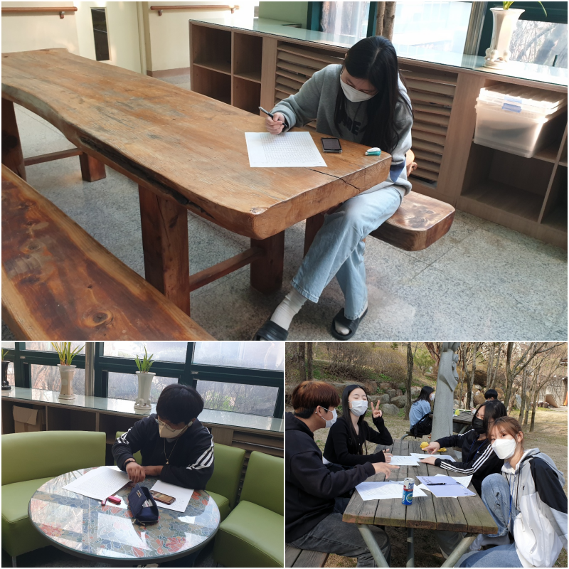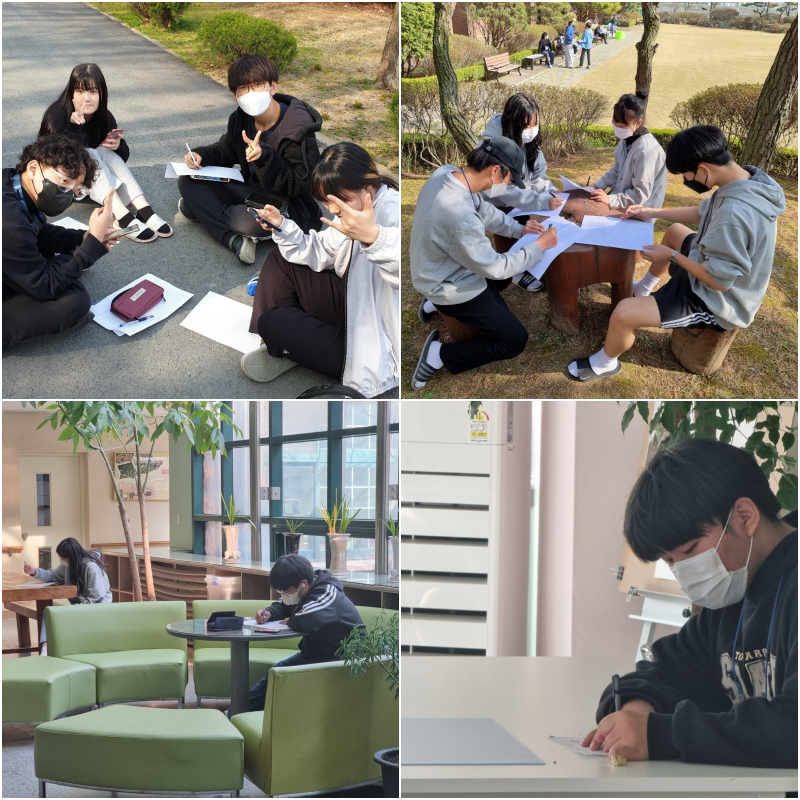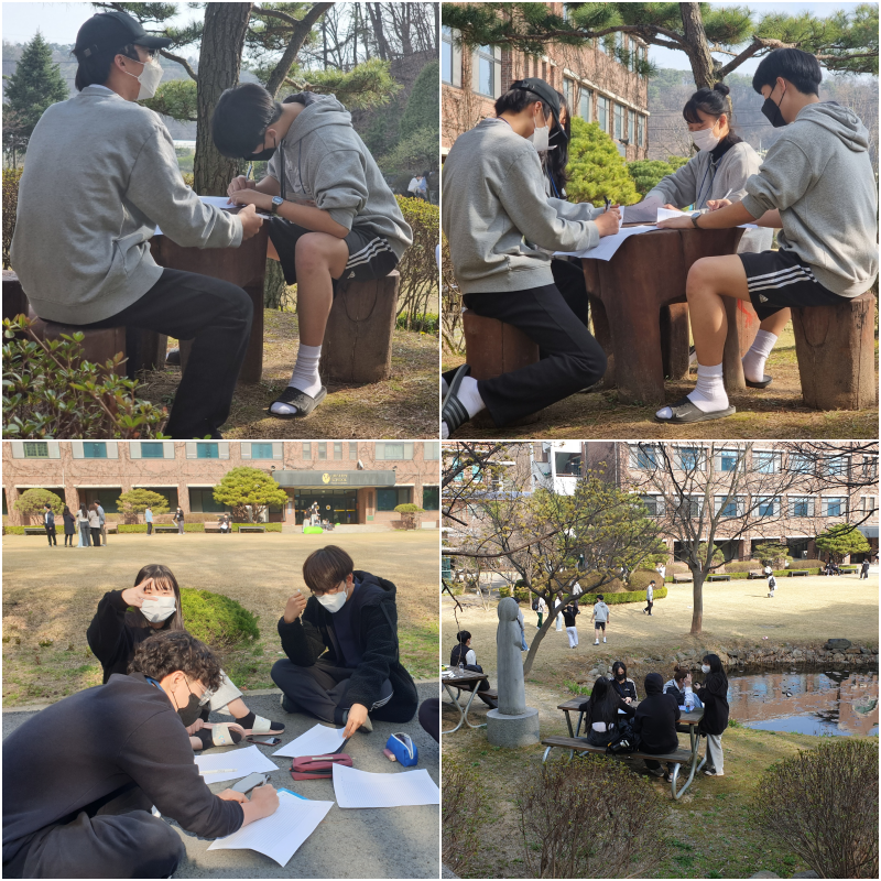 2022.04.06.(수) 7교시 국어과 통합수업으로 국어, 음악, 미술 3가지의 주제를 기준으로 시, 소설, 희곡, 수필, 설명문, 논설문의 목련백일장을 교내 일원에서 실시하였습니다.