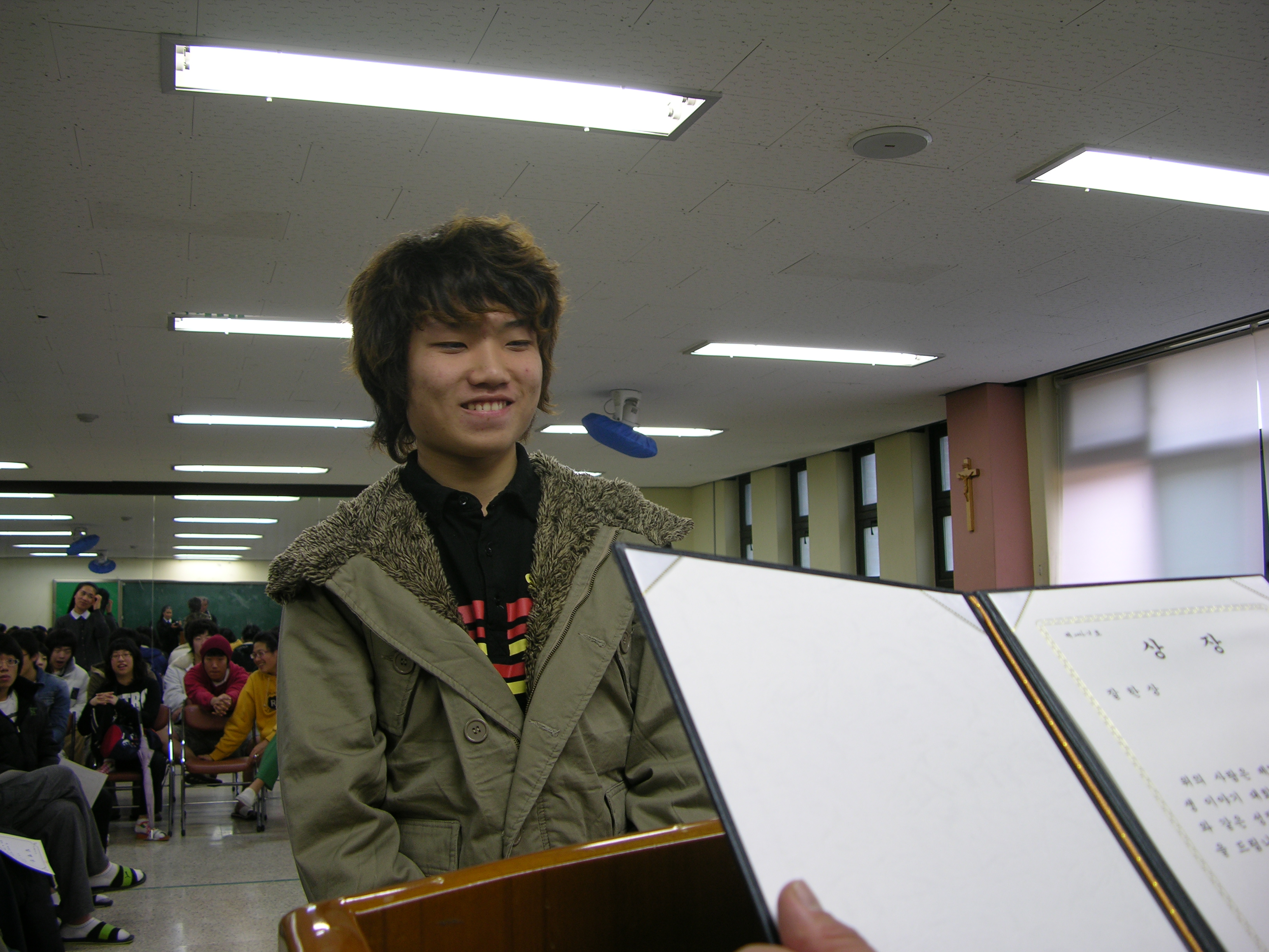<P>1학년 하병구 학생이 제7차 전국 중,고등학교 "이야기 대회" 충북 예선에 출전하여&nbsp;잘한상을 받게 되었습니다.</P>