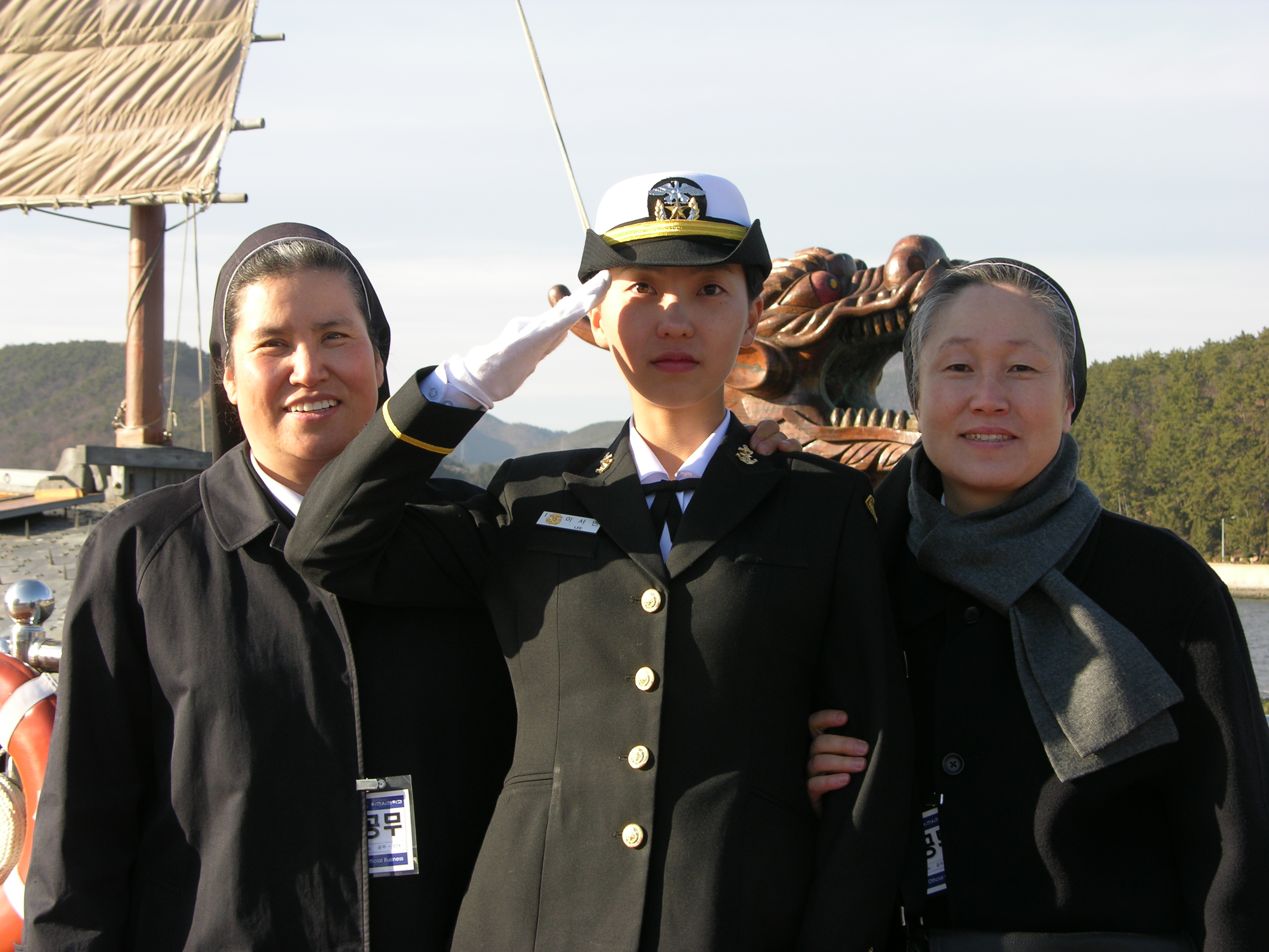 <P>46대1의 경쟁율을 뚫고 우수한 성적으로 입학한 졸업생 이서연 학생의 해군사관학교 입교식에 참석하기위해 백남진 선생님과 교감수녀님, 그리고 제가 함께 다녀왔답니다. </P>