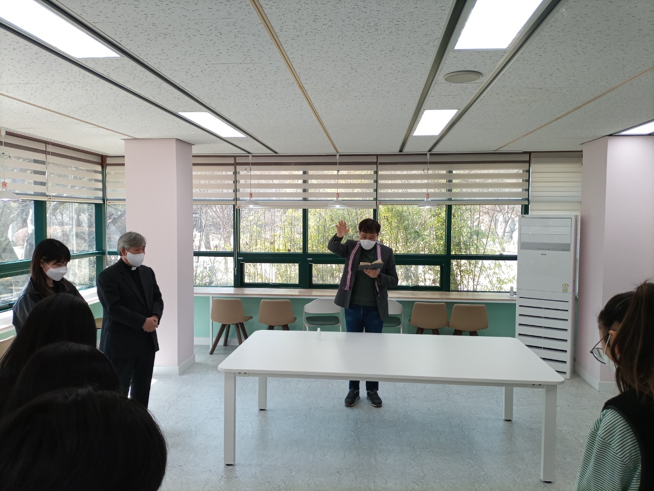 오늘 신부님께서 도서관 축성식을 거행하셨습니다.