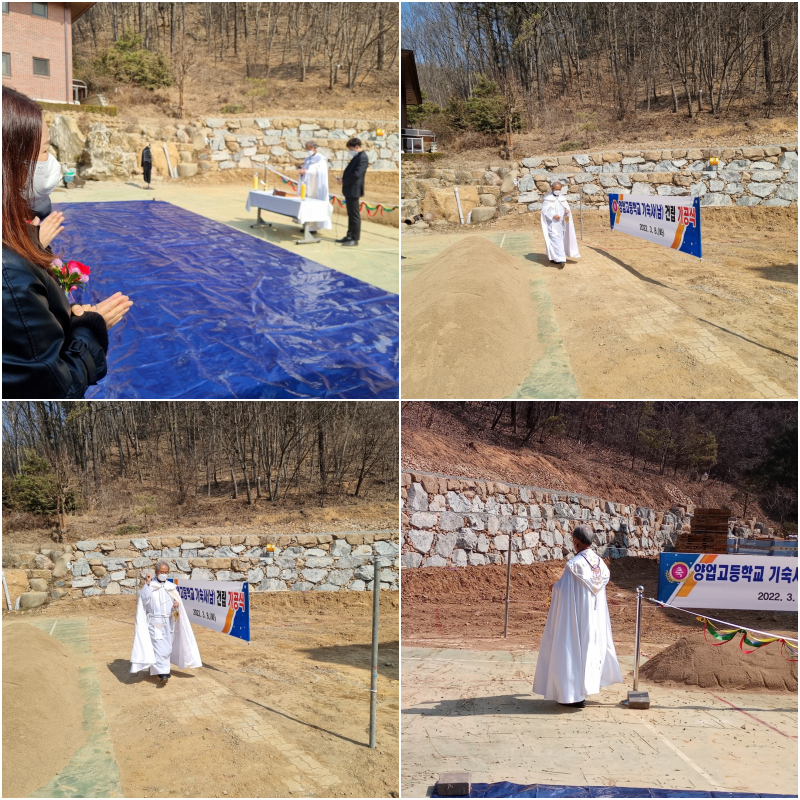 2022.03.08.(수) 11:30 양업 공동체가 한 자리에 모여 초대 학교장 신부님이신 윤병훈 베드로 신부님의 주례로 양업고등학교 남학생 홈(기숙사) 기공식을 진행하였습니다.