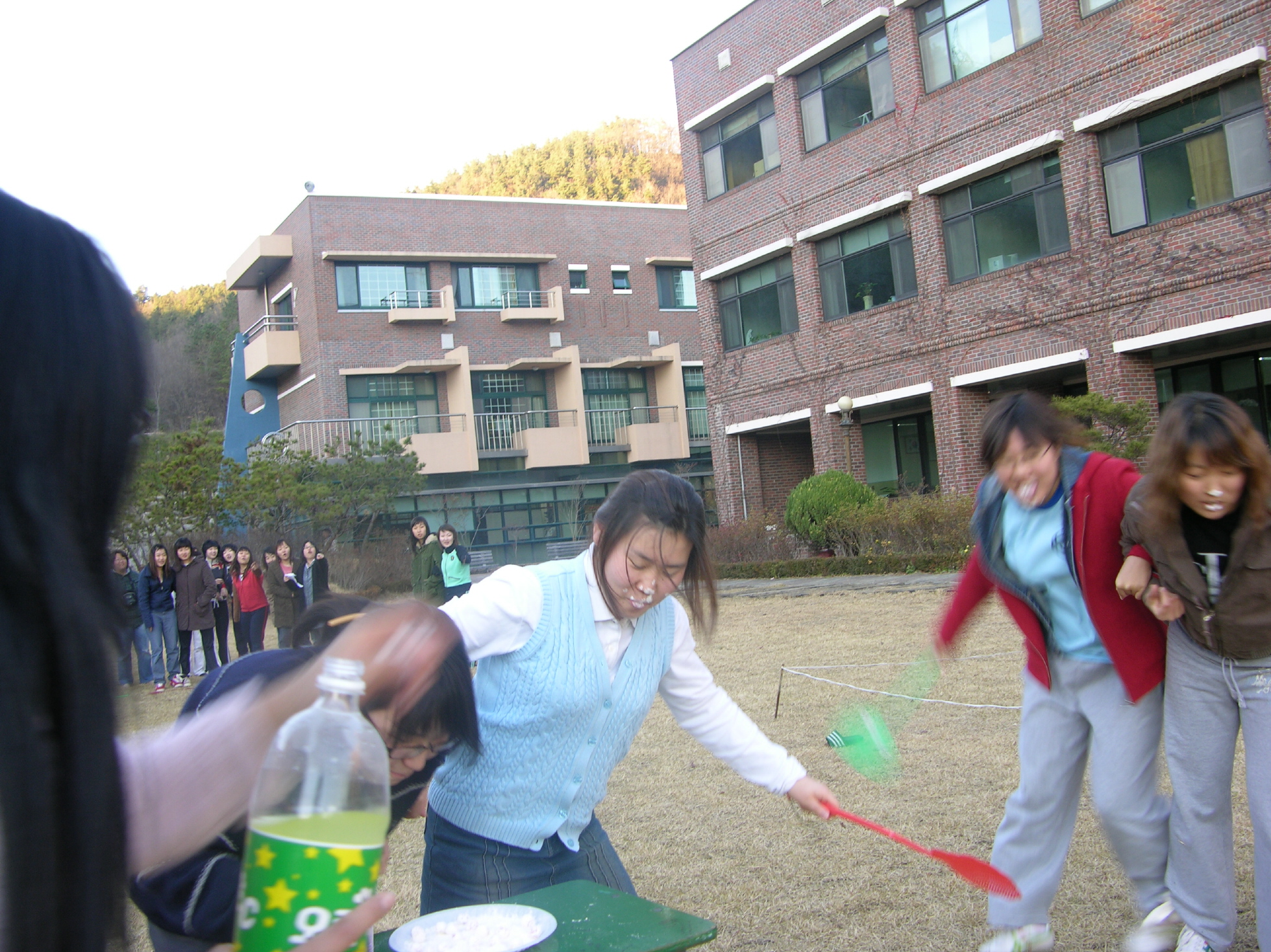<P>양업의 여학생들은 기숙사 이벤트로 이만오천원의 상금을 잡기 위해 잔디밭 위를 한 몸이 되어 달리고 또 달렸습니다.</P>