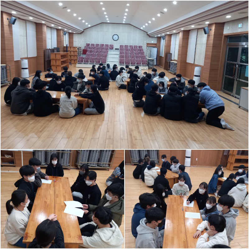 반과 홈의 일원으로 한해동안 꼭 지켜야할 약속을 정하는 활동을 학생들은 아주 진지하게 협의 후 정하고 있습니다.
