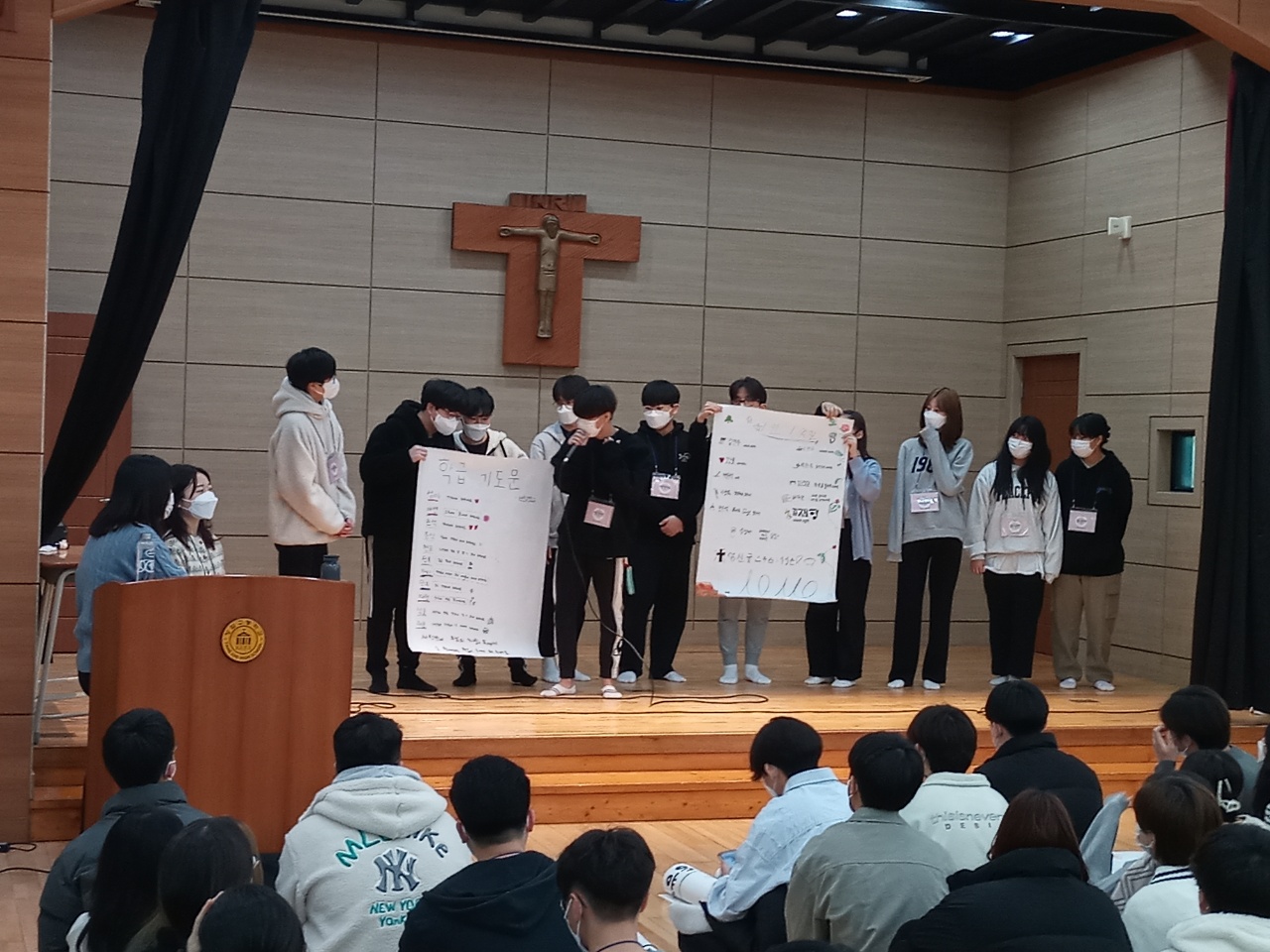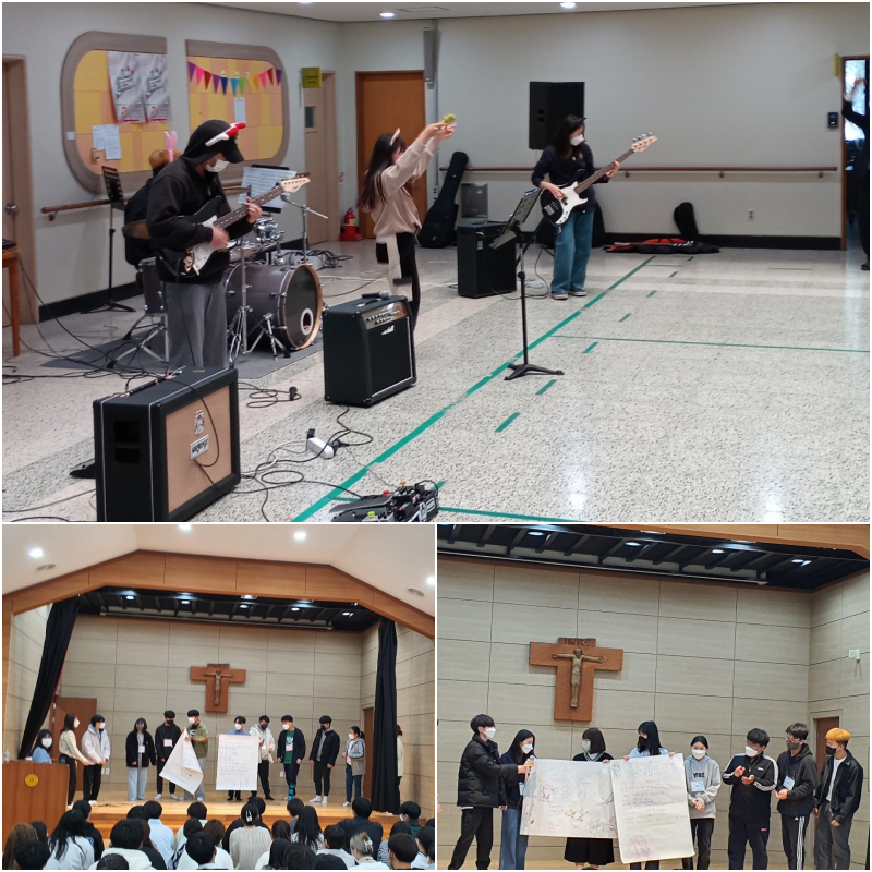 2022.03.04.(금) 양업사랑 마지막 날 양업 학생들은 반 및 홈(기숙사) 십계명을 발표하였고, 중앙홀에서 각자 평소 연습한 것을 기반으로 한 게릴라 콘서트로 교육활동을 마무리 하였습니다.