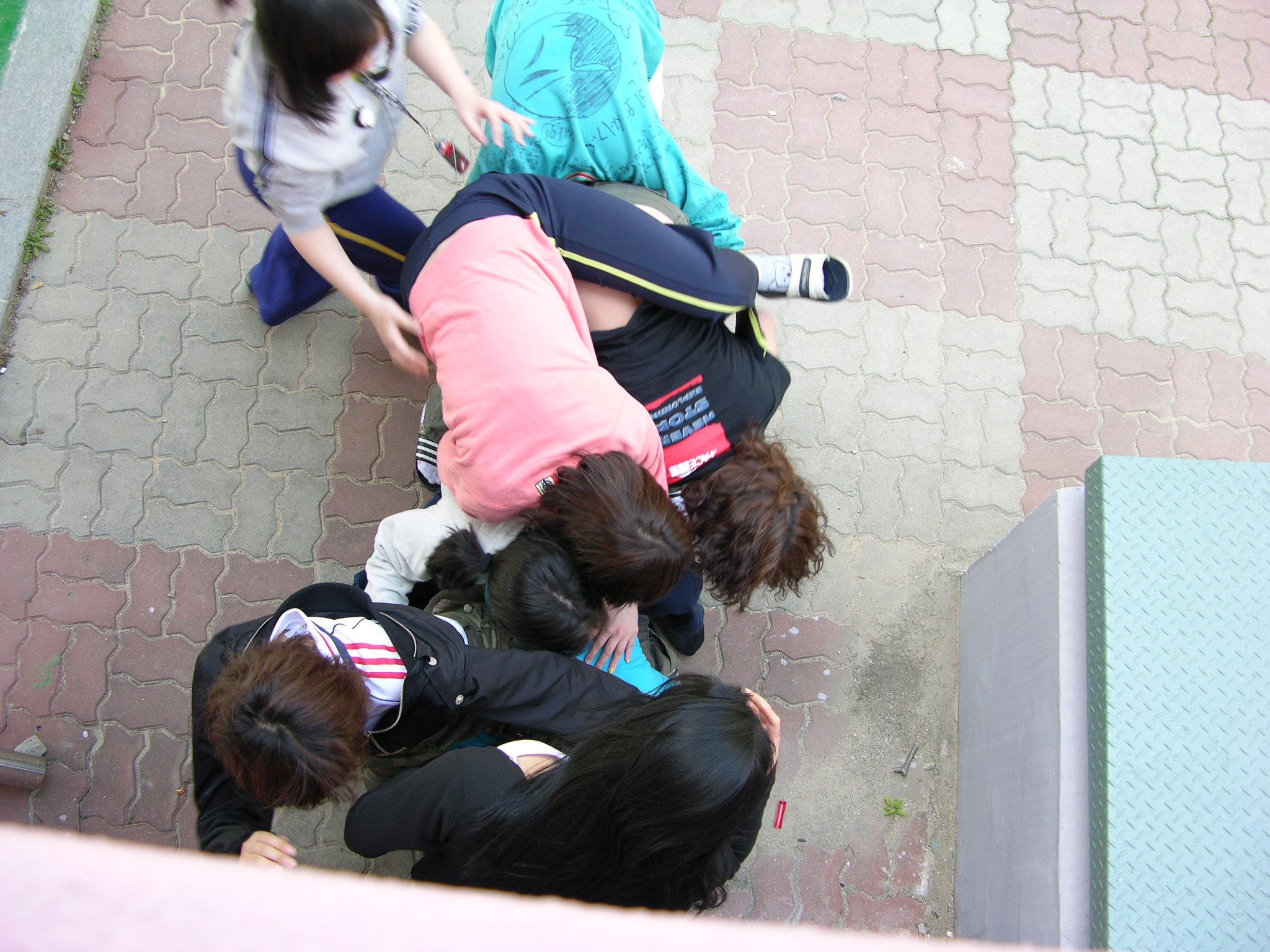 남학생들의 농구시합과 때를 맞추어 여학생 7명(말광량이 상아, 연희,예빈,정아,지은, 서연, 주현)은 막간을 이용하여 말뚝박기를 하였다. 자기네끼리 한참 시끄럽게 깔깔거리더니 시들해졌는지 급기야 농구를 하고있던 남학생들을 다 몰아내고(야~ 나가라! 하더니...? 순순히 비켜주는 남학생들의 매너ㅋㅋ ) 여학생들 끼리 규칙,심판 무시한 농구시합을 하였다....