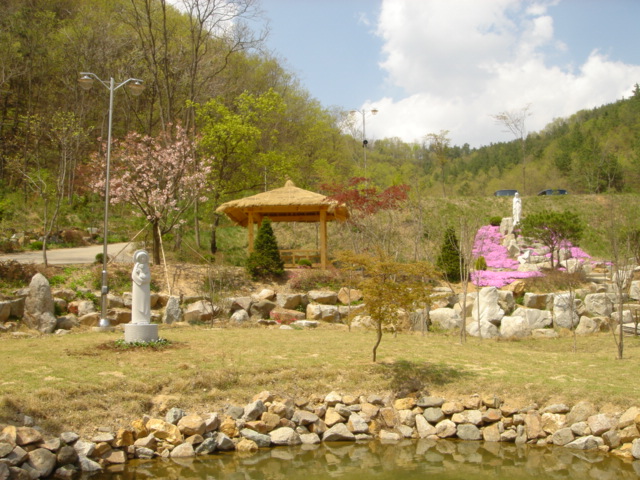 성모상 뒤로 새식구(왕벚꽃: 유준우맘 기증)도 보입니다