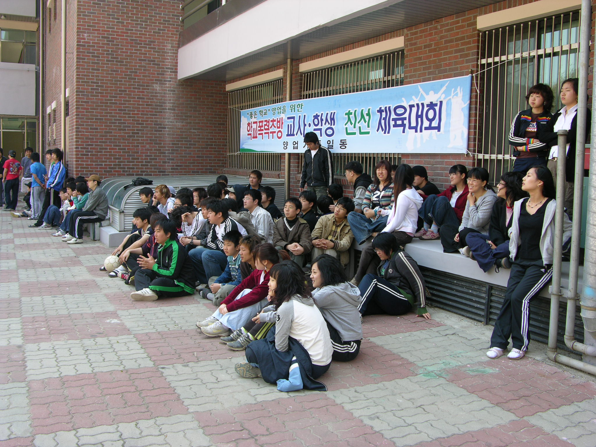농구. 씨름. 족구. 발야구. 축구. 고무줄 놀이, 단체 줄넘기로 시합을 하였는데..농구는 학생들에게 큰 점수차를 벌이면서 교사들이 졌으나,