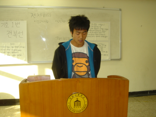 아직 미천하지만 절 학생회장으로 뽑아주시면 학교의 일꾼으로 거듭나는 부지런한 학생회장이 되겠습니다. 감사합니다.