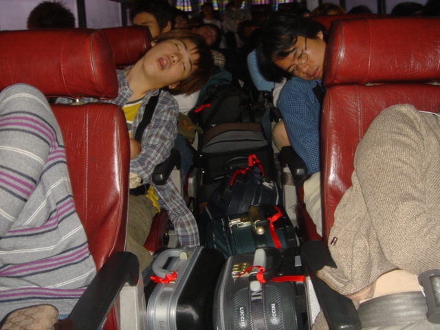 중국이동수업중 버스안에서 피곤한 샘과 학생의 수면시간