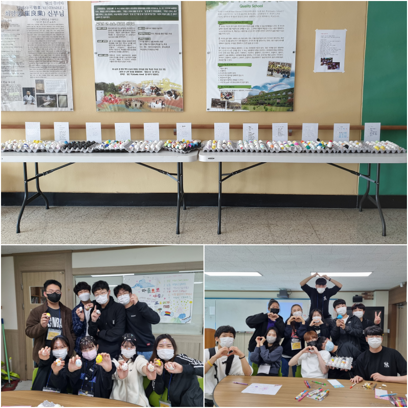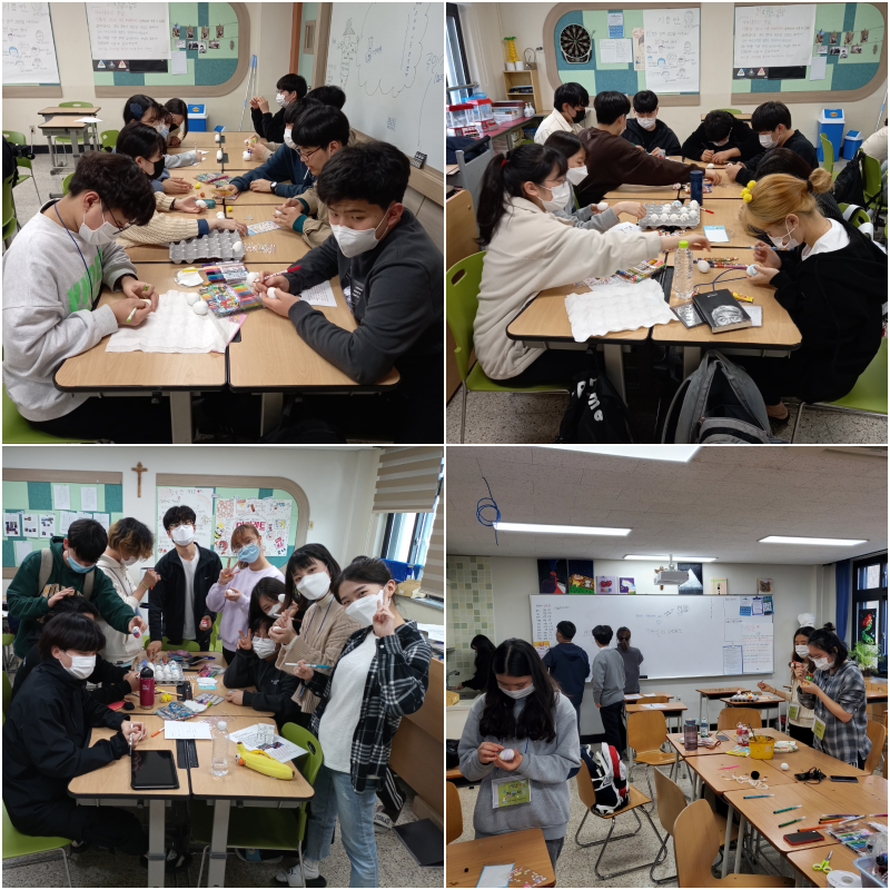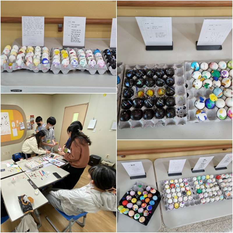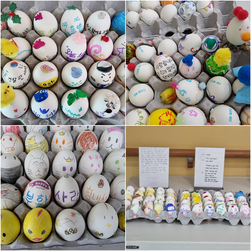 영성학 시간에 양업 학생들이 부활달걀을 만들어 전시했습니다.
