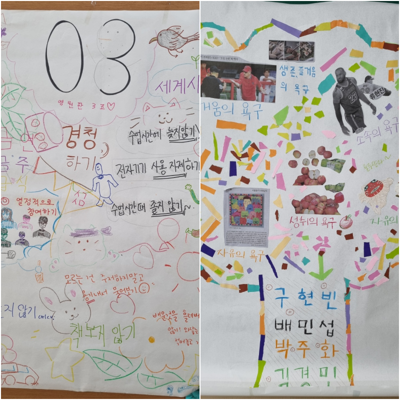 1학년은 '내가 가고자 하는 곳으로 가면 어떤 결과를 가져올까?, 나는 무엇을 원하는가' 등을 함께 생각하는 시간을 가졌고, 2학년은 '가치게임, 세계시민 의식'등에 대해 고민했습니다.