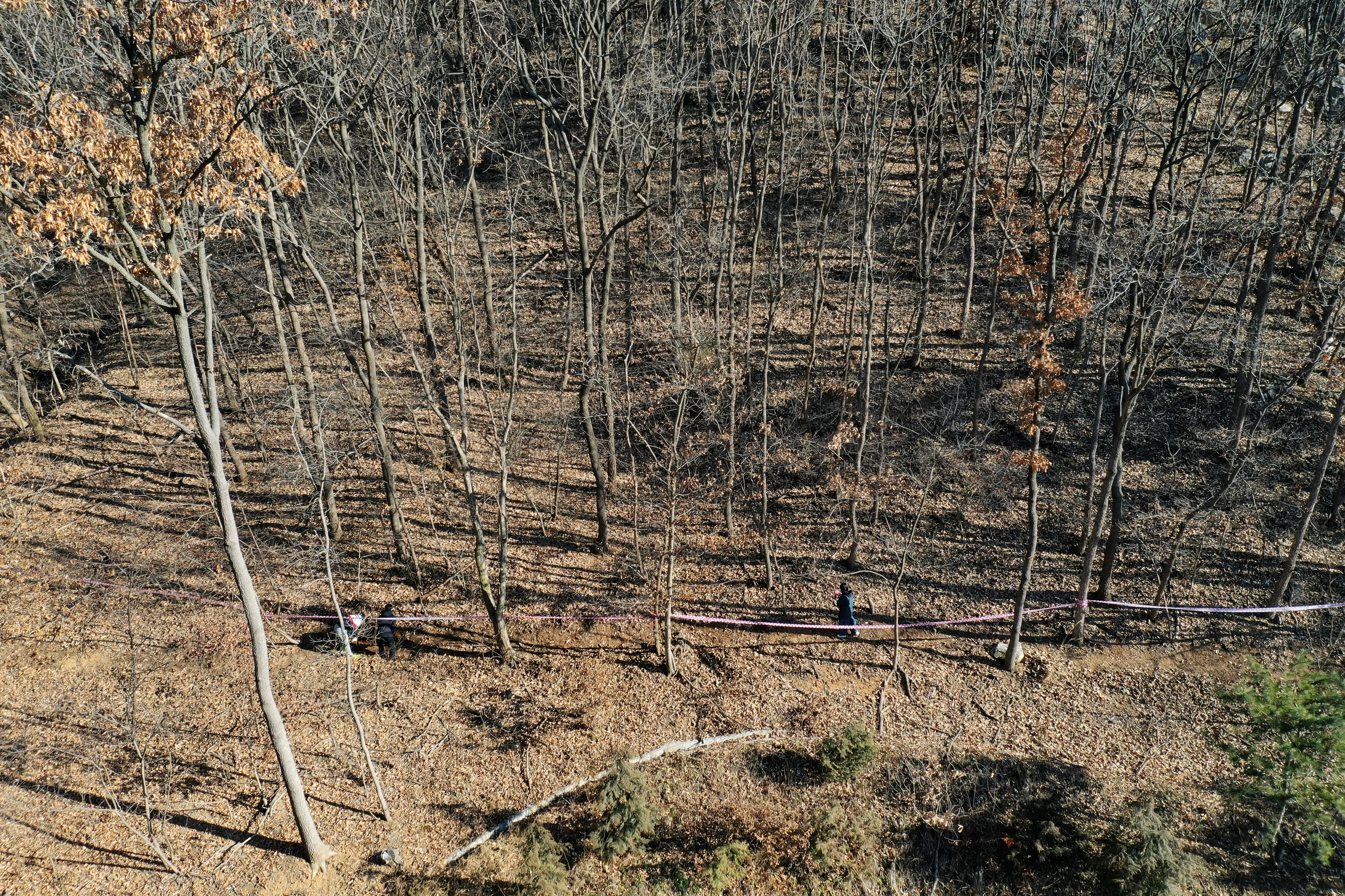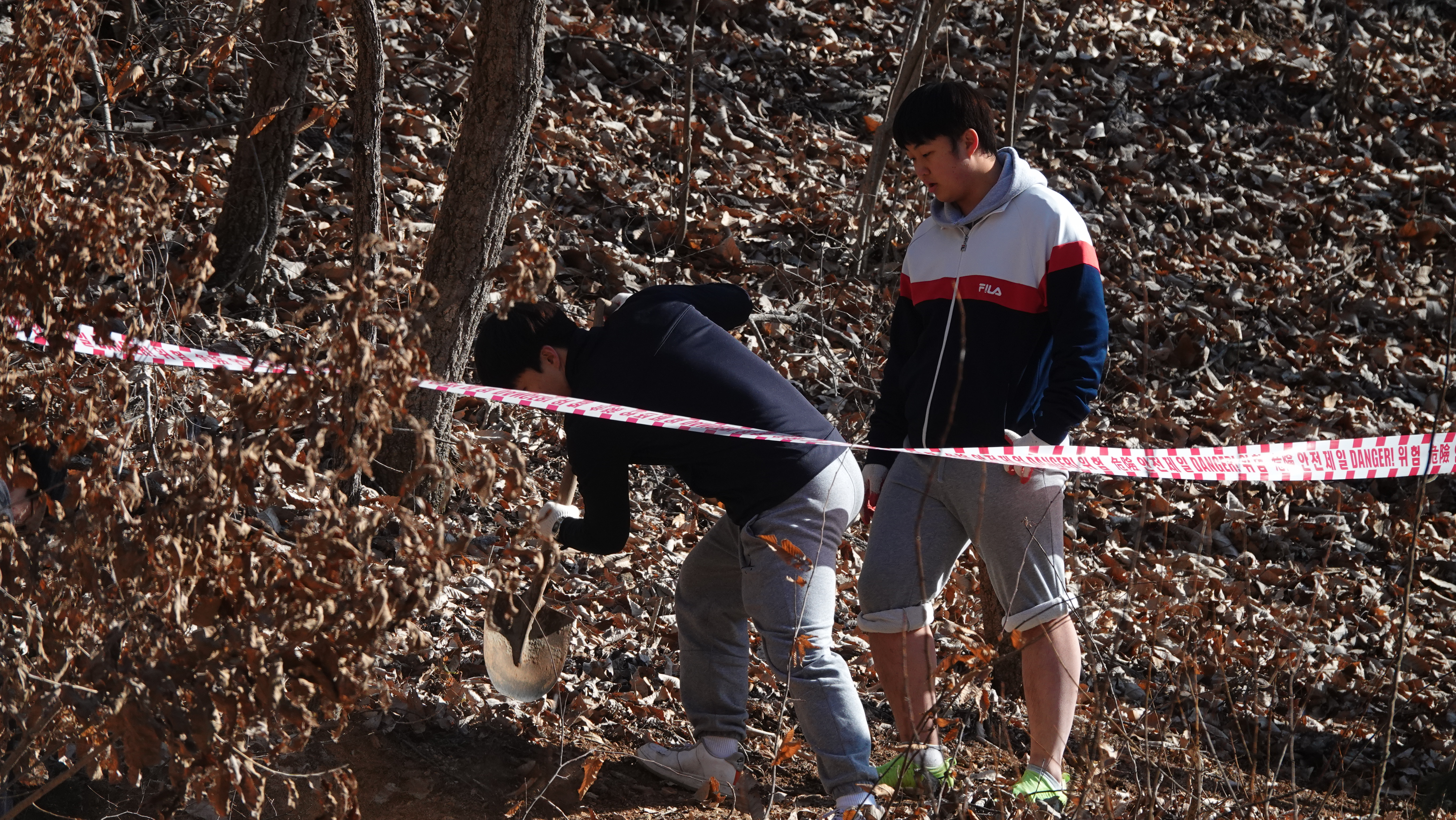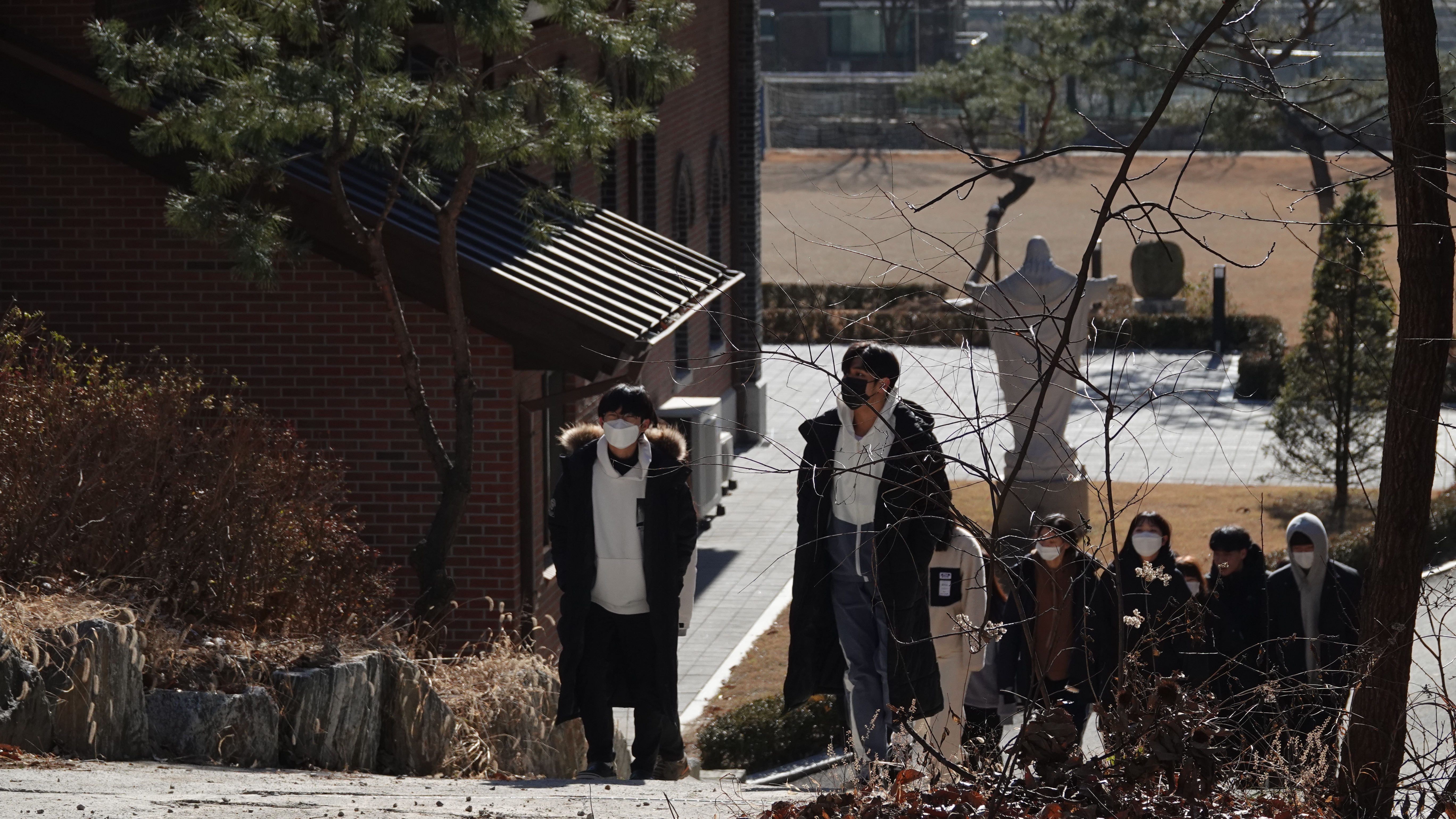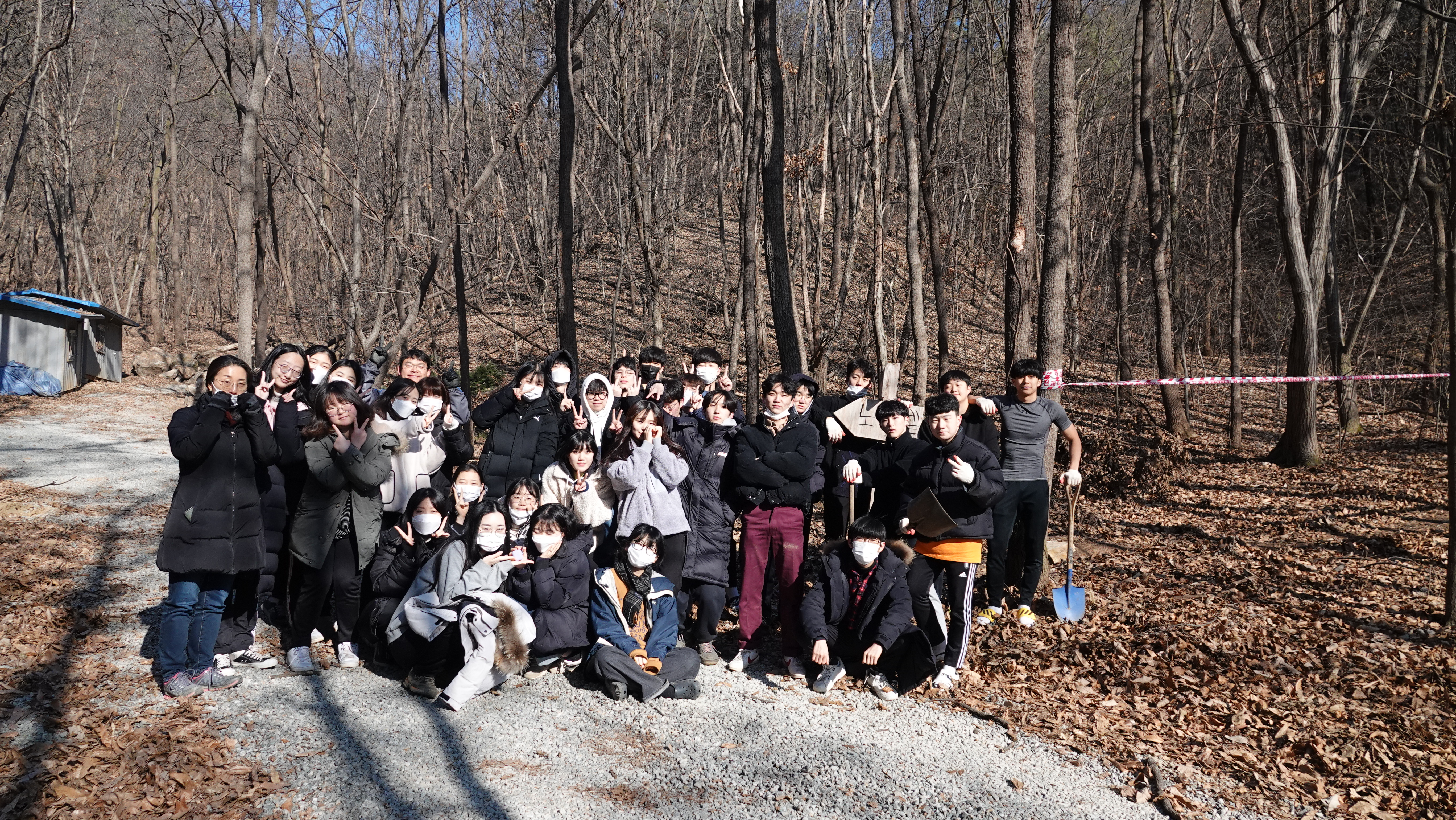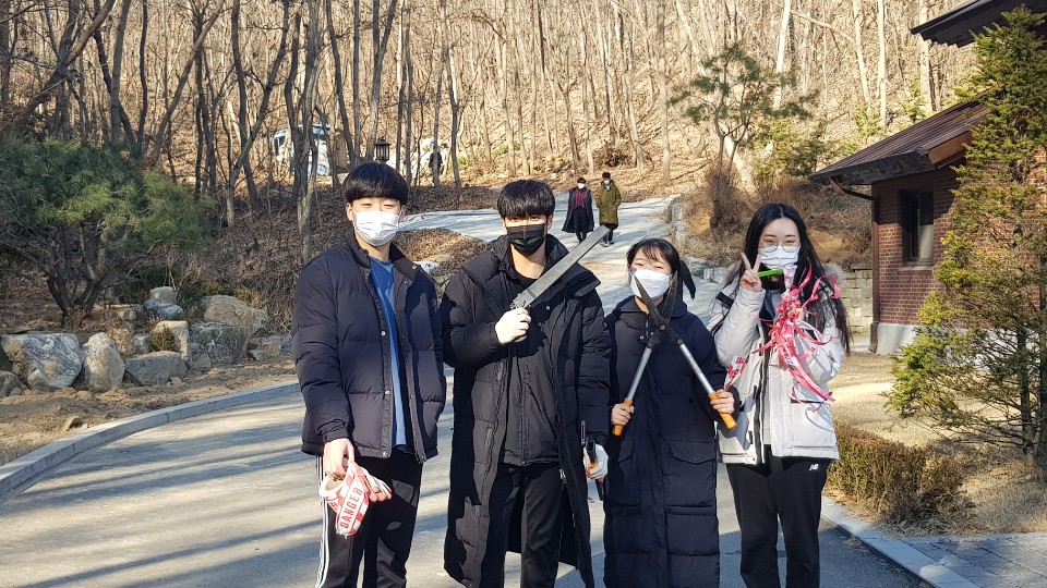 추운 겨울날, 졸업을 앞둔 21기 선배들이 고생해서 만든 오솔길을 내년 봄에 양업 후배들이