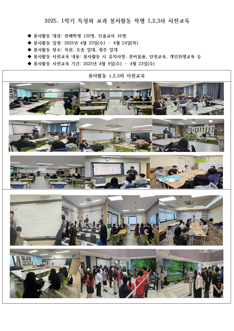 2025. 특성화교과 봉사활동의 1, 2, 3차 학생 사전교육을 실시하였습니다.
