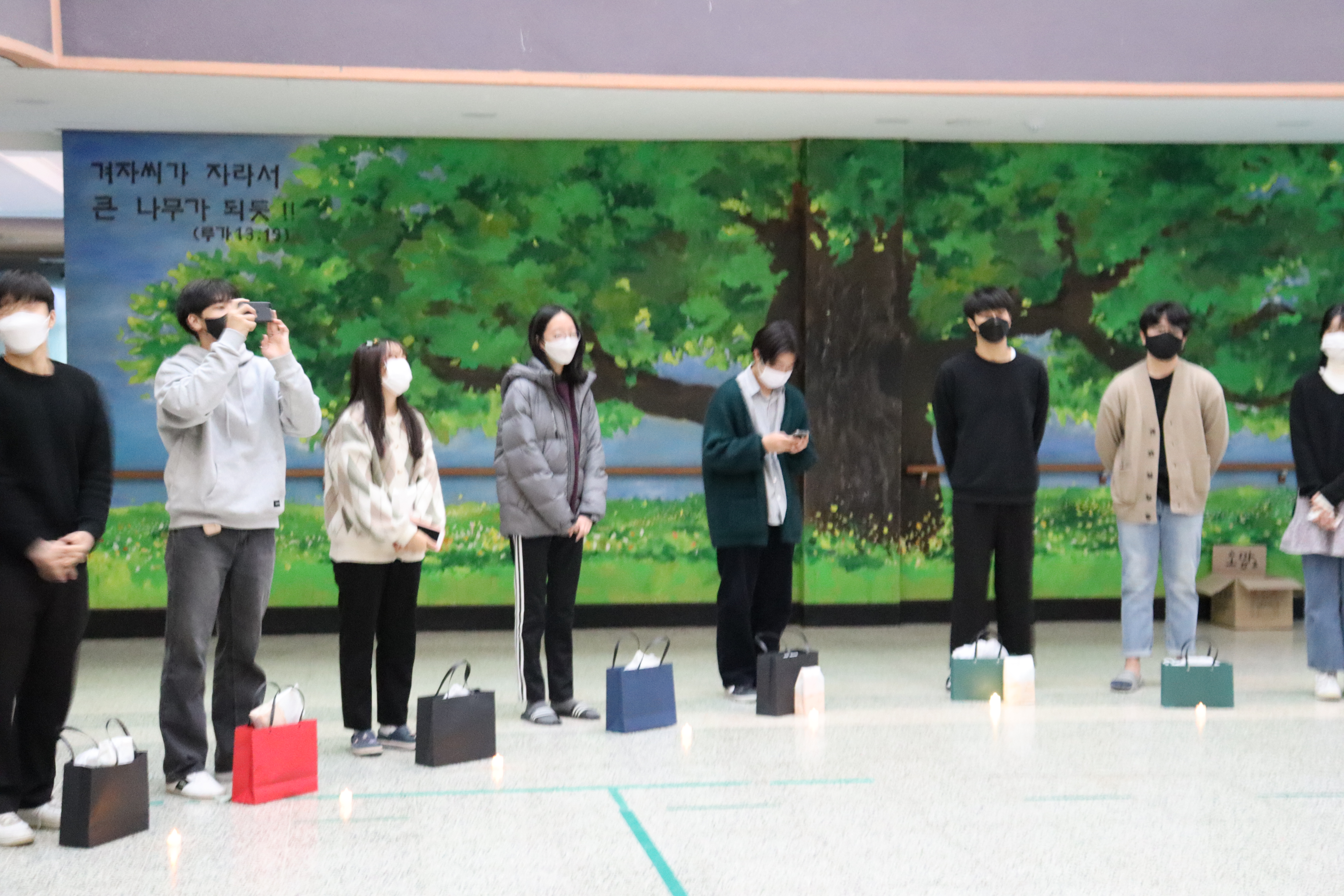 선배들의 수능시험을 응원하기 위해 후배들이 준비한 선물과 축복의 노래선물로