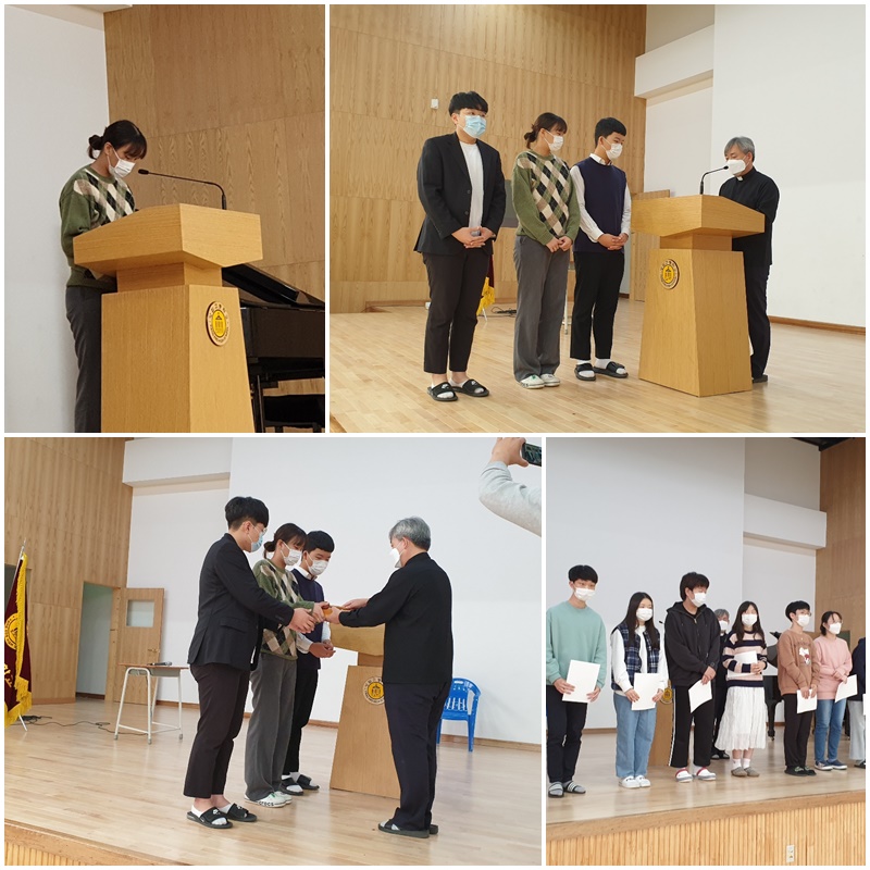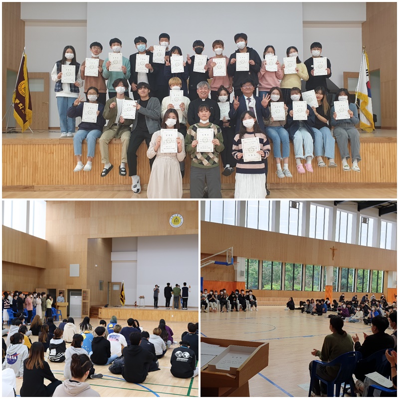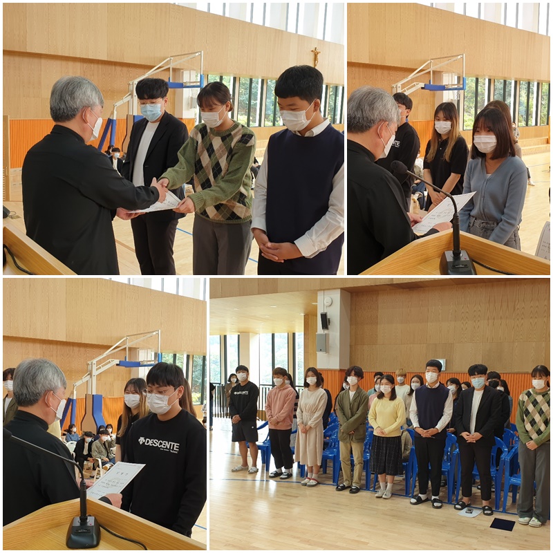있었습니다. 교장신부님께서 제 24대 학생회장단에게 앞으로의 활동에 따듯한 격려의 말씀도 해주시는 뜻깊은 시간을 가졌습니다.