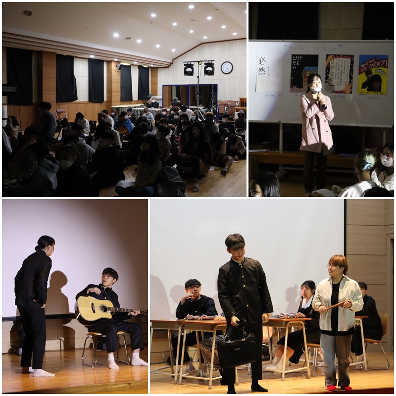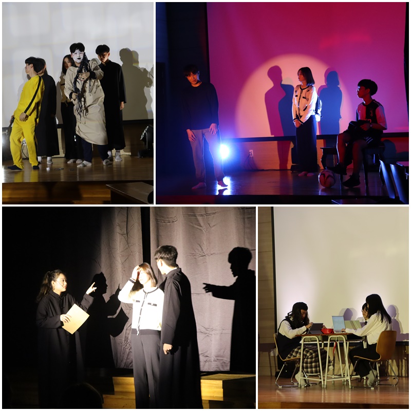아쉽게도 3학년은 입시준비로 함께 참여하지 못했지만 처음으로 연극을 준비하는 1학년과 작년을 기억하며 더 성숙한 모습을 보여준 2학년이 서로의 무대를 감상하였습니다. 서로를 배려하며 서로에 대해 더 알아갈 수 있었던 연극제를 무사히 마칠 수 있음에 감사드립니다.