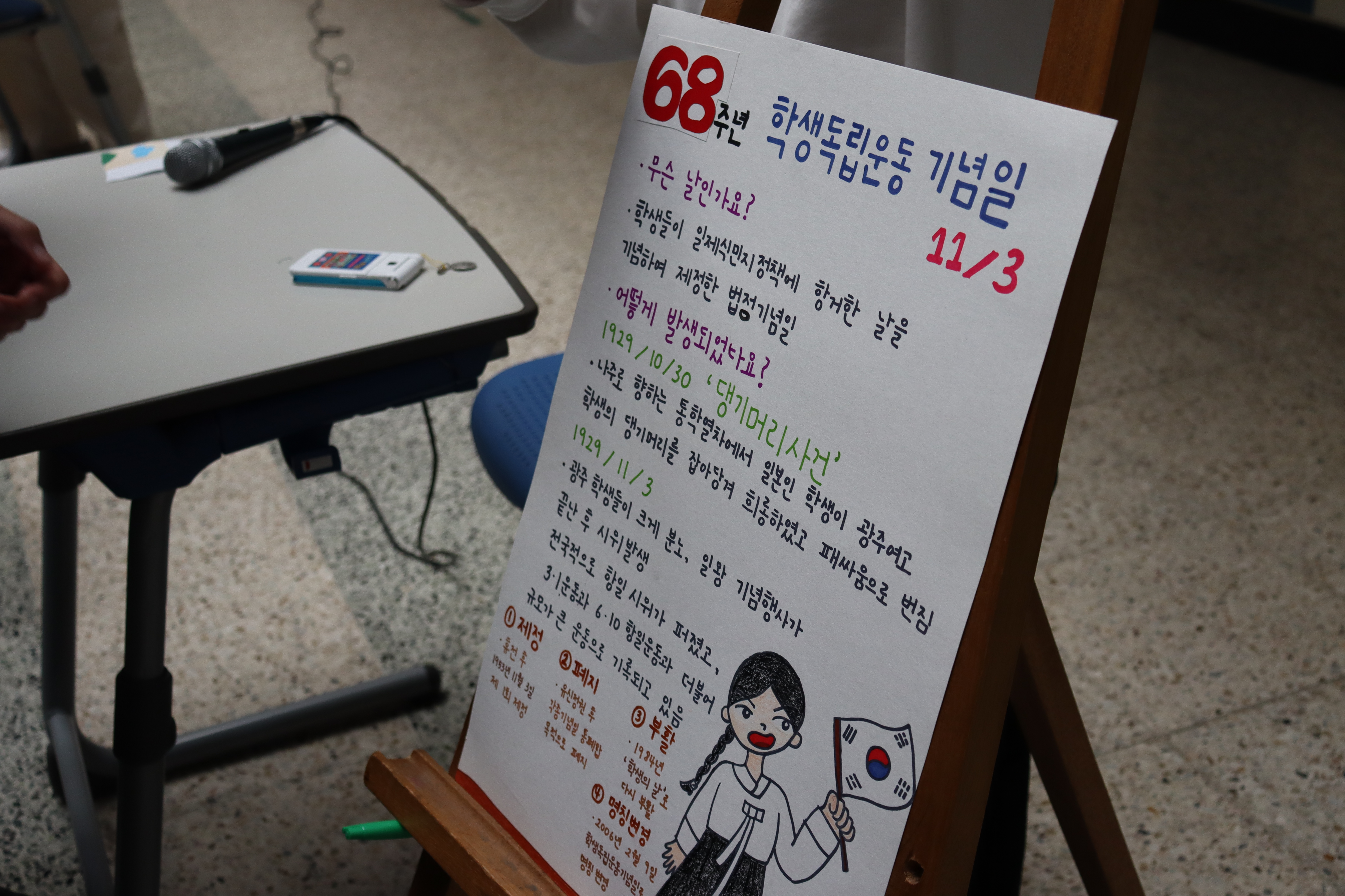 그분들에게 감사를 표하기 위해 학생독립운동 기념일 행사를 진행하였습니다. 또 세녀석과 함께