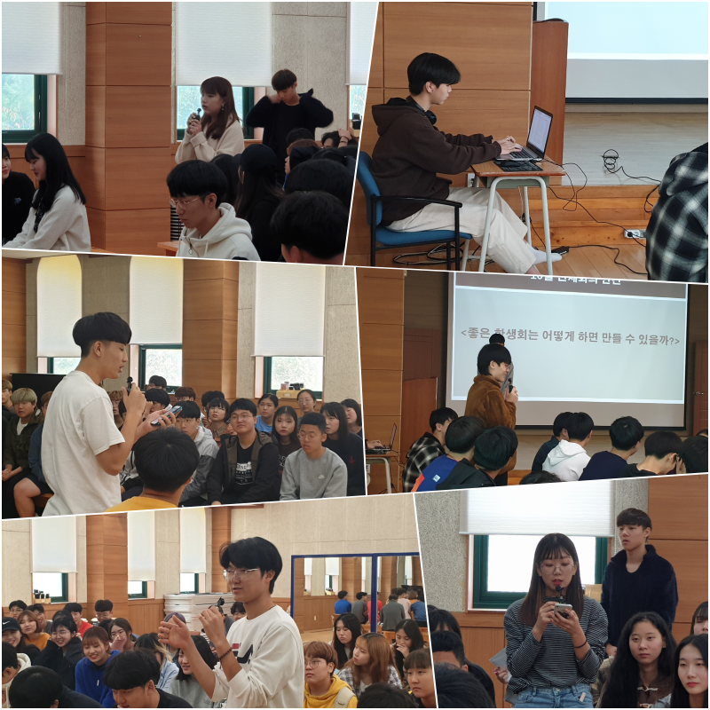 이번에 제안된 안건은 “좋은 학생회는 어떻게 하면 만들 수 있을까?”라는 주제로 전체 회의가 열렸습니다.