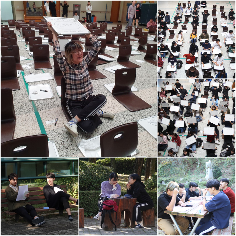 2019년 10월 8일 양업고등학교에서는 “573돌 한글날”을 기념하며, 국어교과와 문예창작부 동아리가 주관하여 ‘우리말 골든벨’과 ‘백일장’ 행사를 열었다. ‘우리말 골든벨’은 문예창작부 동아리에서 문제를 제작한 바, 학생들은 중앙홀에 한 자리에 모여, 우리말과 문학의 다양한 분야에 대한 배움을 나누는 과정에서 서로를 격려하고 끝까지 기다려주는 모습을 보여주었다. ‘백일장’은 국어, 음악, 미술 교과가 함께 융합주제를 낸 바, 국어교과는 ‘걸음’, ‘기다림’을, 음악교과는 ‘양방언의 frontier’, 미술교과는 ‘이중섭의 물고기와 노는 세 아이’를 선정하였다. 학생들은 가을이 무르익은 교정 이곳저곳에서 자신의 생각과 느낌을 활자화하는 과정을 통해, 내 안의 또다른 나를 바라보는 시간을 가졌으며, 가을의 한 순간을 집중해서 느껴볼 수 있었을 것이다. 우리 아이들에게 가을, 나, 생각, 표현의 단어가 한 자리에 모여, 한층 성장할 수 있는 시간이 되었기를 바라본다.