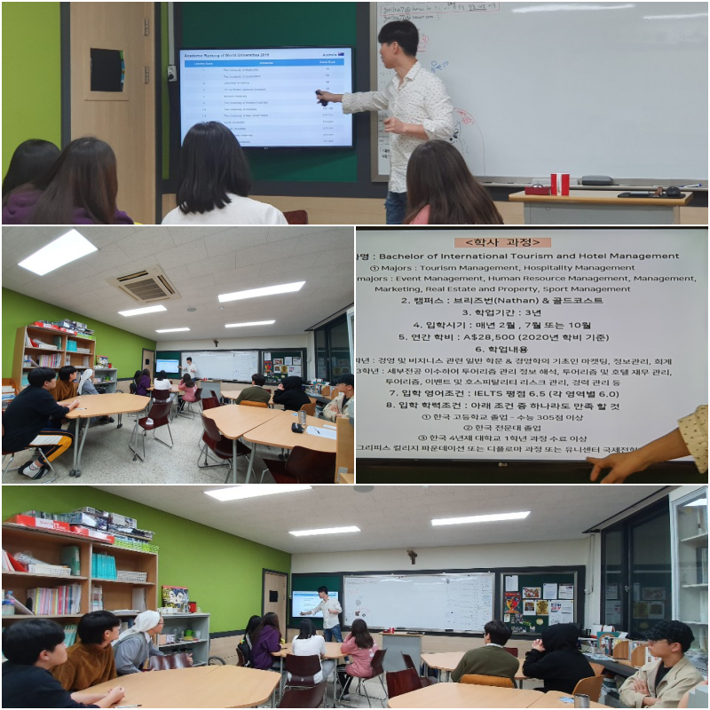 2019.10.08.(화) 오후 7시 천지인실에서 호주 대학교 유학설명회를 실시했습니다.