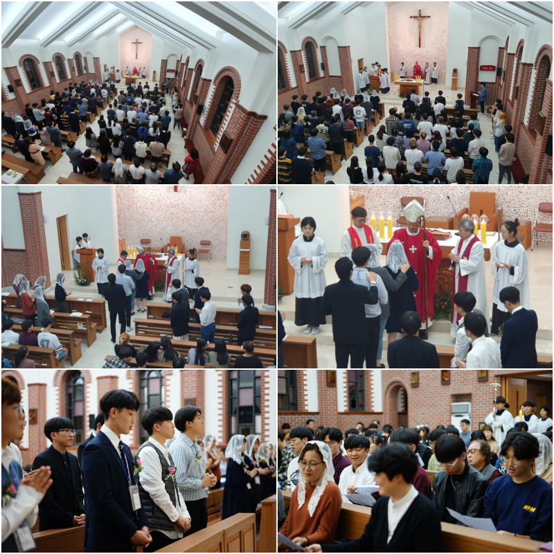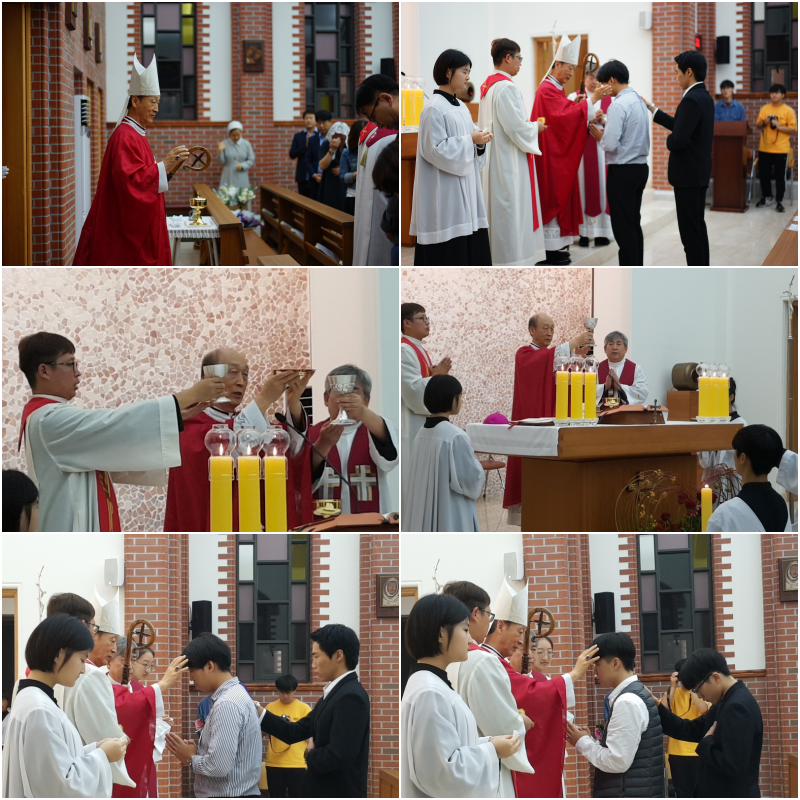 2019.09.25.(수) 19:30분 장봉훈 가브리엘 주교님의 주례로 양업고 8명의 학생이 견진성사를 받았습니다.