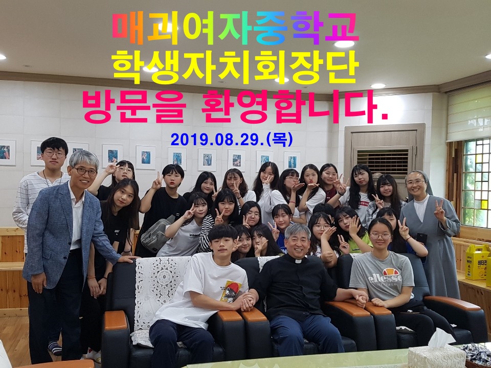 2019.08.29.(목) 매괴여자중학교 학생자치회장단 21명과 인솔교사로 교감선생님외 2분이 양업고등학교를 방문하셨습니다.