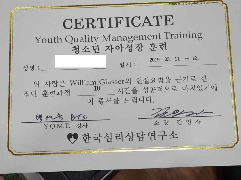 Y.Q.M.T는 자기를 존중하고 남을 배려하는 능력을 기르고, 좋은 선택을 하고 행동에 책임을 질 수 있게 하며, 자율적이고 주도적인 행동으로 나아가는 능력을 기르고자 하는 목표로 실시되었습니다.