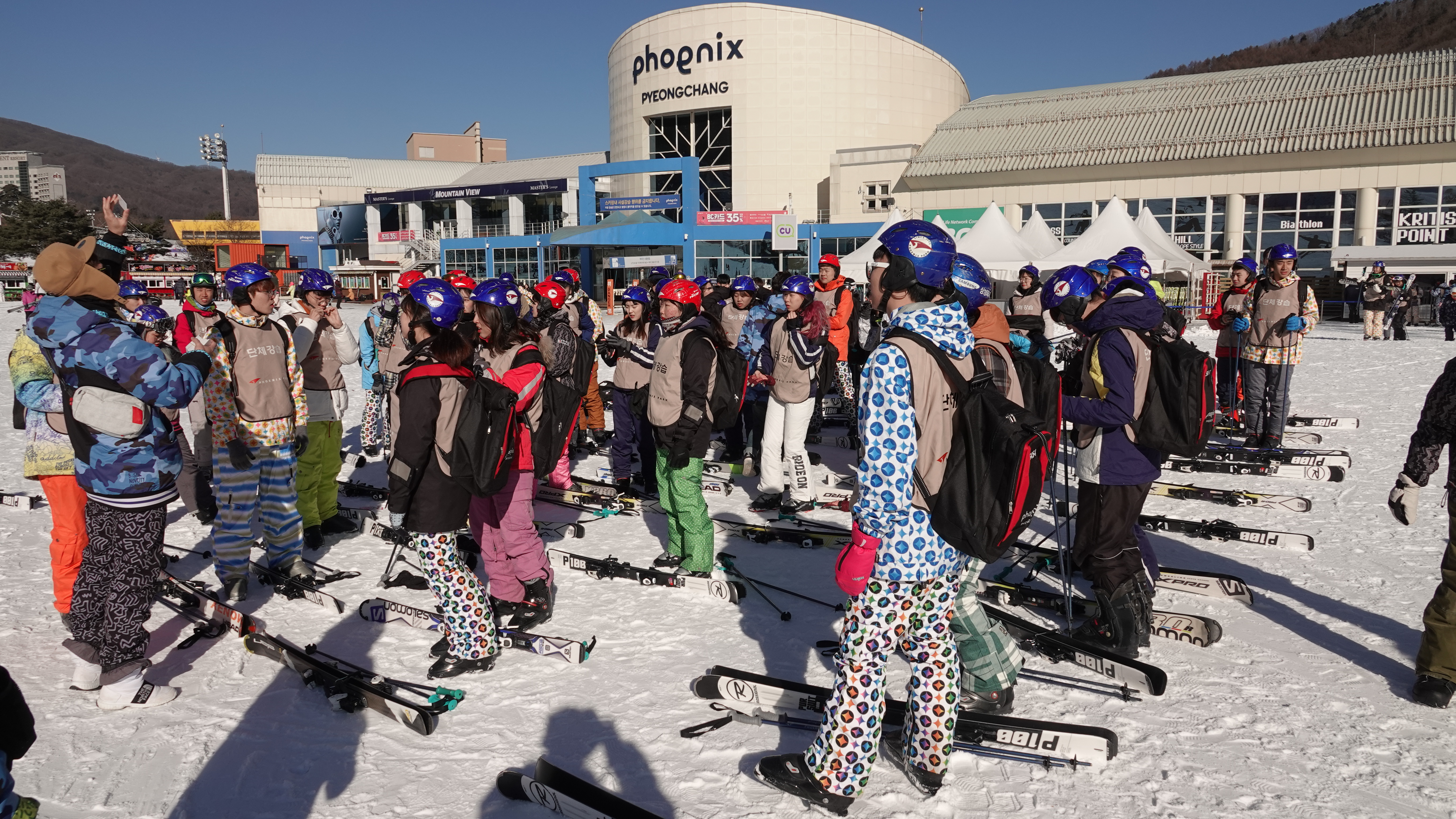 스키 초보인 학생과 숙련된 스키어들이 하나가 되어 협력, 나눔 및 소통의 장을 마련하는 시간이였습니다.