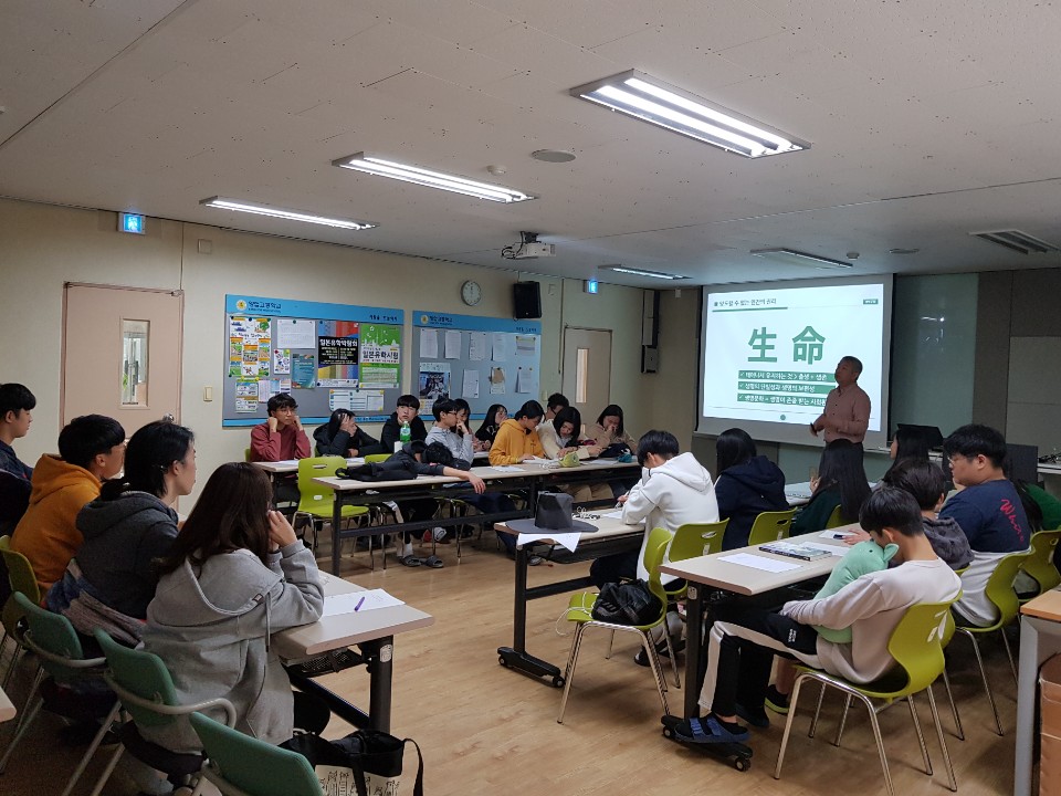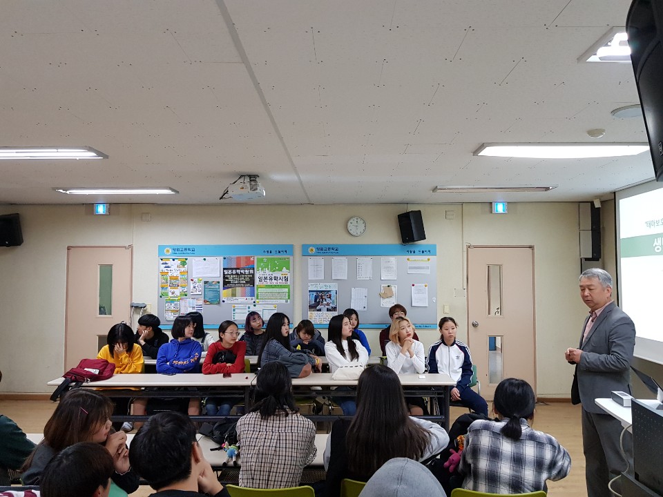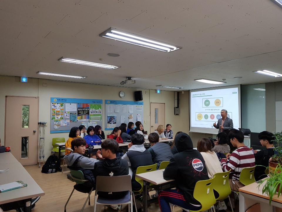 2018.10.15.(월) 09;30~12:20까지 고등학교 1, 2, 3학년을 대상으로 김현기 여가문화 연구소장님을 모시고