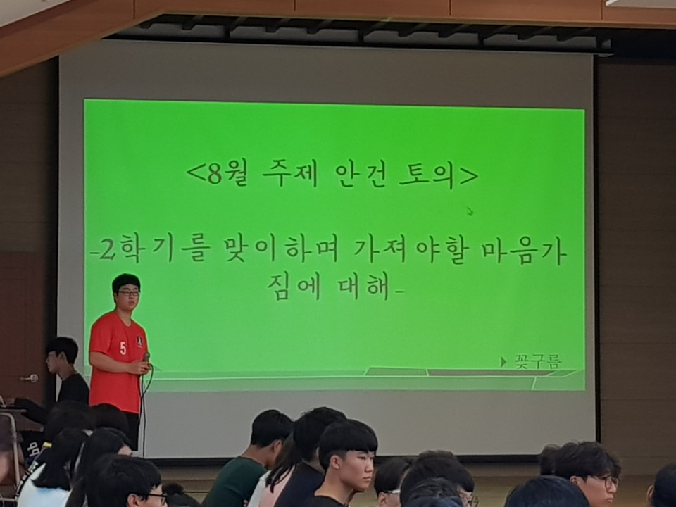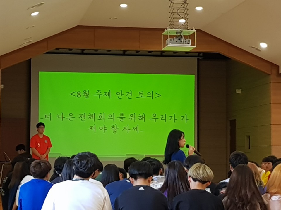 양업고등학교에서는 매월 학생자치회의 주관으로 전체학생들이 참여하여 학교생활에 문제점을 심도있게 토의를 통해 논의하는 전체회의를 실시합니다.