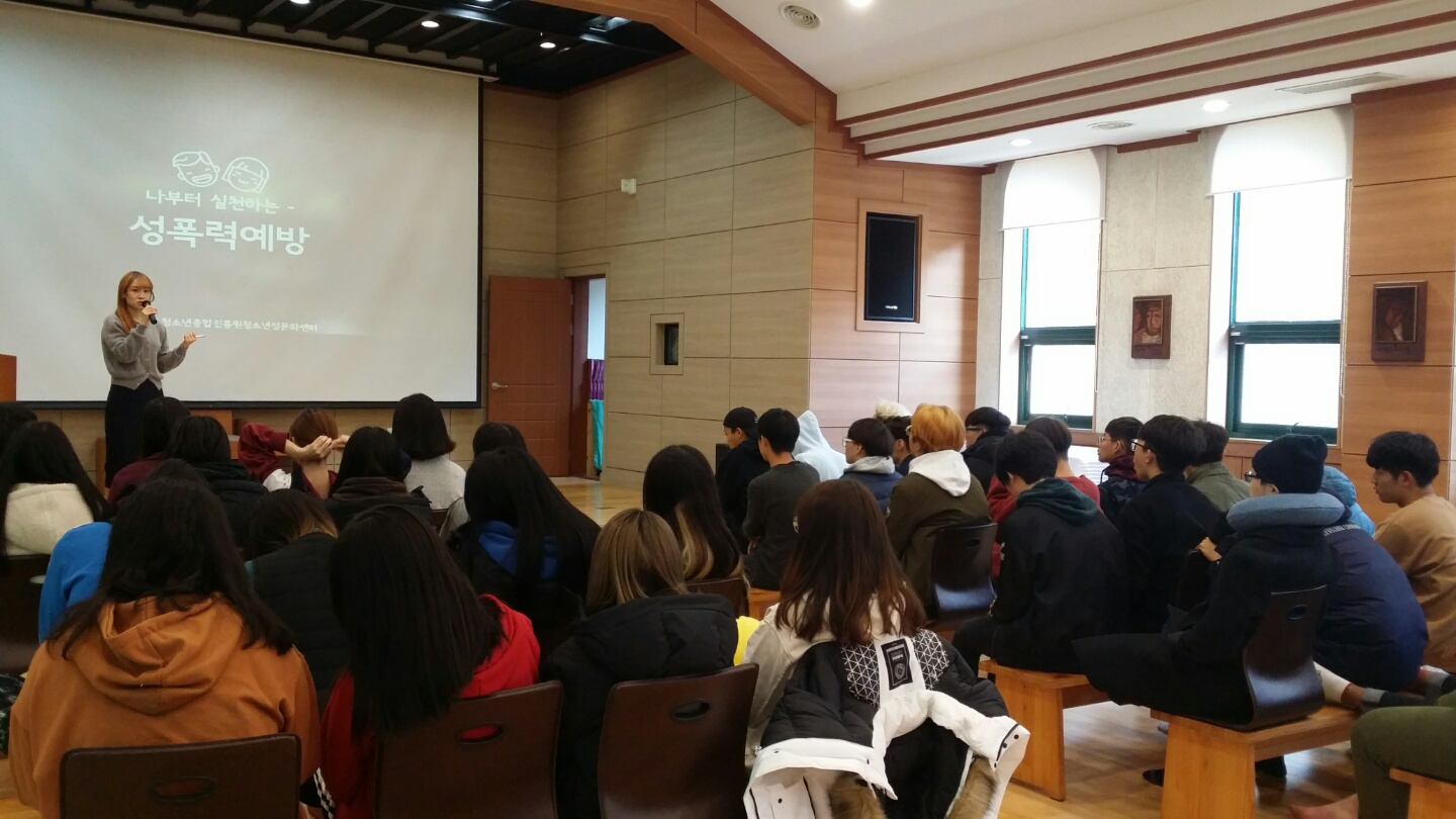 3학년, 2학년, 1학년 각 학년별로 서로의 생각을 나누며 우리 주위에서 일어나고 있는 여러 가지 성문제에 대해서 찬성과 반대의 의견을 들어보았습니다. 남자와 여자, 장애인과 비장애인, 성인과 미성년자에게 갖는 고정관념부터 성불평등으로 인한 인권침해까지... 우리가 미처 알지 못했던 잘못된 성행동으로 인해서 간접적인 가해자가 될 수 있다는 점을 알려주셨습니다. 자신 뿐 아니라 다른 사람을 소중히 여기며 성과 사랑, 생명은 분리된 것이 아닌 하나라는 의미를 알게 해주는 시간이었습니다.