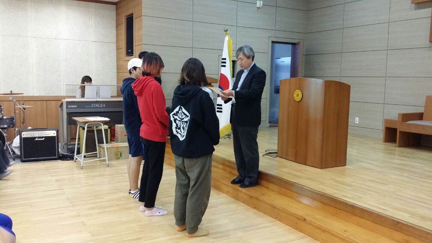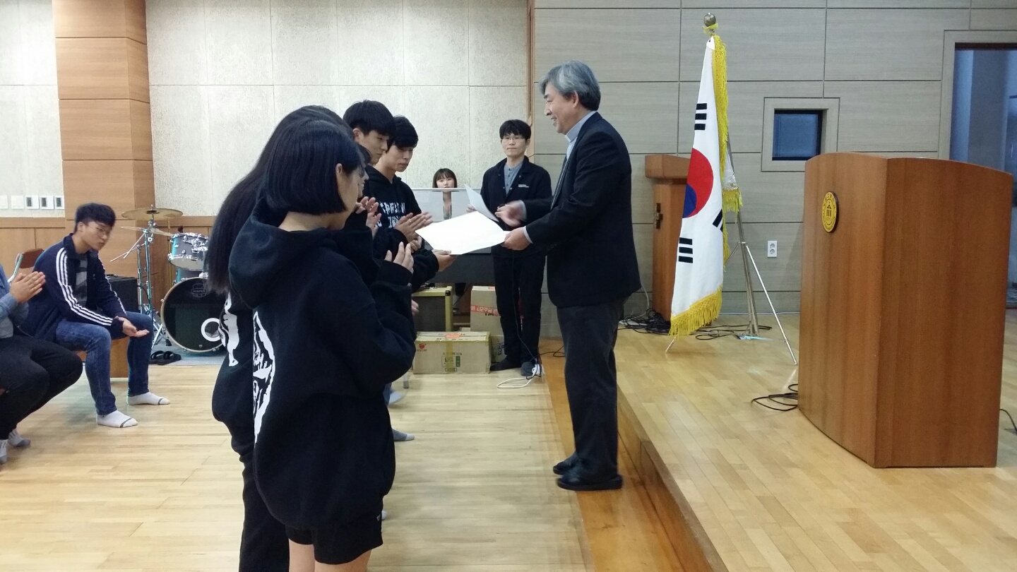 오늘 전체 조회에서는 한글날 백일장 우수작에 대한 시상과 우수 동아리 시상 등이 있었습니다.