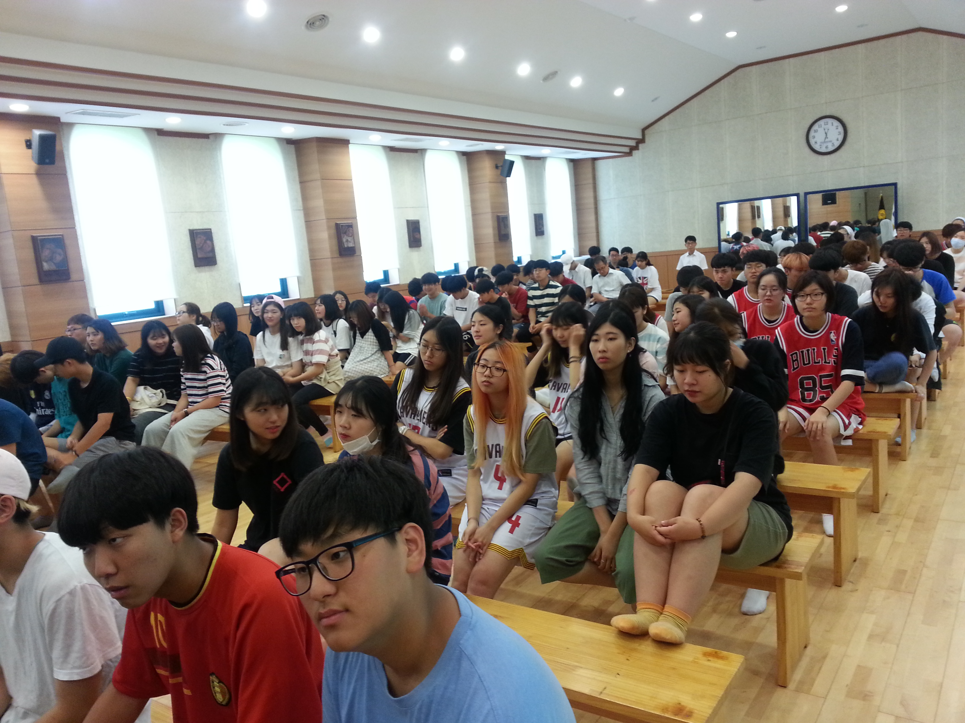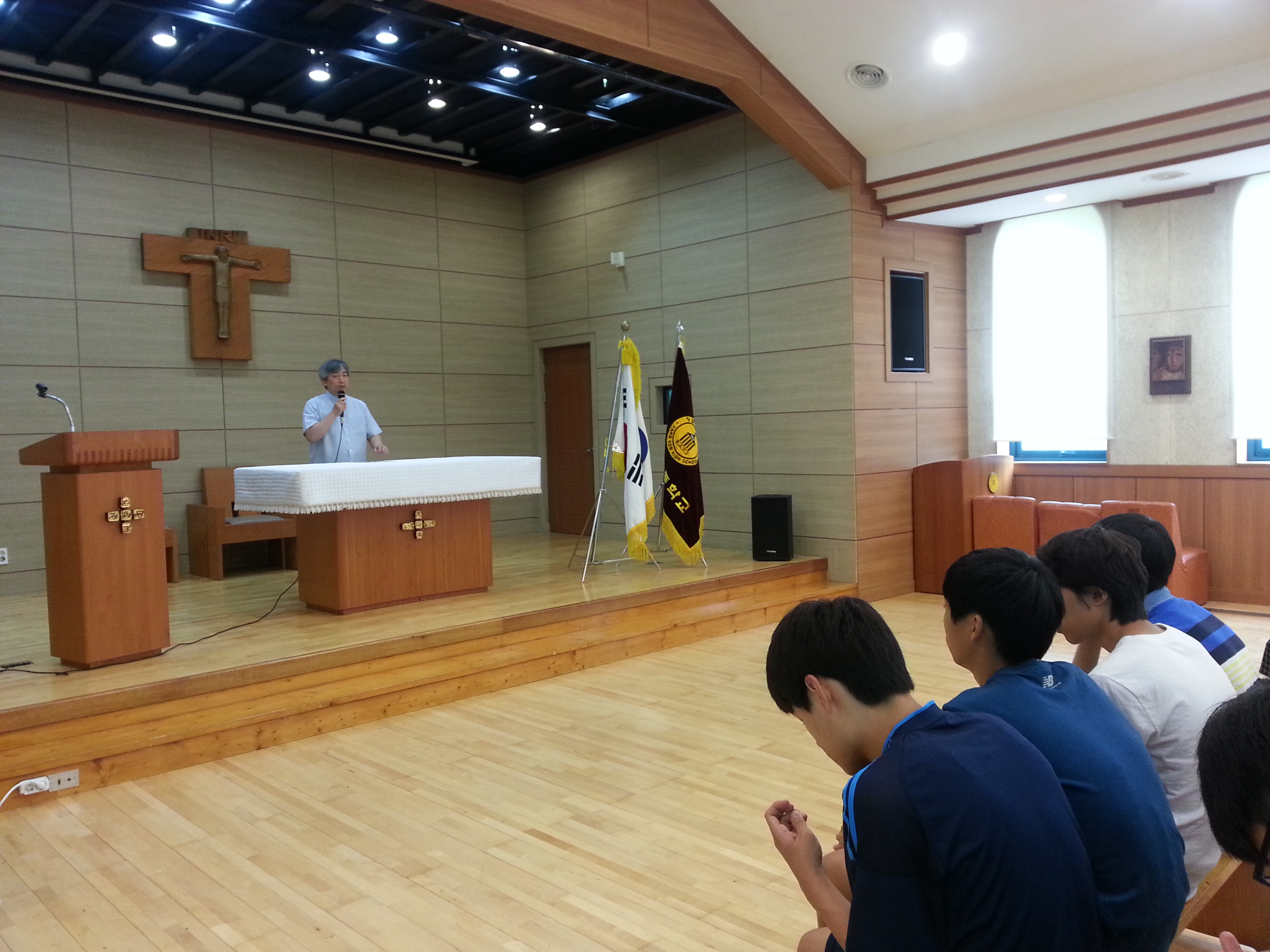 4교시에 전체조회가 있었습니다. 교장신부님께서는 훈화를 통해 현재 대학입시나 수능에 맞춰 공부하기보다는 자신의 재능과 꿈, 끼와 역량을 펼칠 수 있도록 더 높고 넓은 시각으로 세상을 바라볼 것을 학생들에게 주문하였습니다. 또한 시험과 점수에 얽매이기 보다는 세상을 긍정적으로 바라보며 깨어있는 정신과 열정으로 하느님께서 주신 자신의 탈란트를 잘 계발하여 세상을 향하여 힘껏 뻗어 나갈 것을 요청하였습니다.