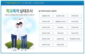 ‘16년 1차 학교폭력 실태조사는 학교나 학교 밖에서 발생한 학교폭력 관련 경험과 학교폭력에 대한 학생의 인식을 조사하기 위해 실시하는 설문조사입니다.